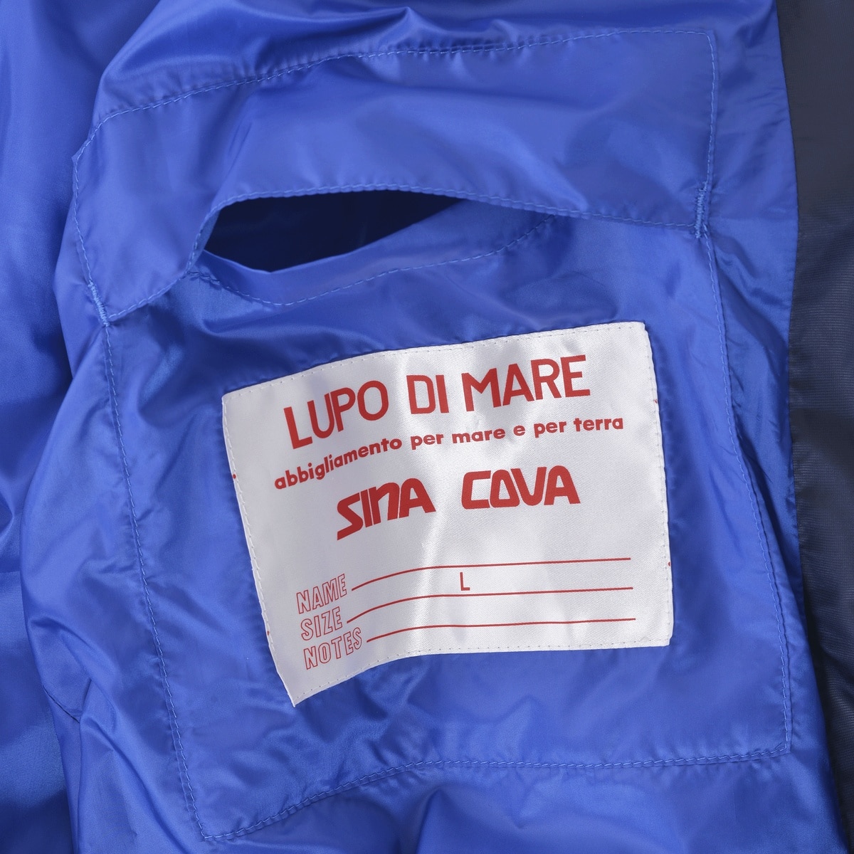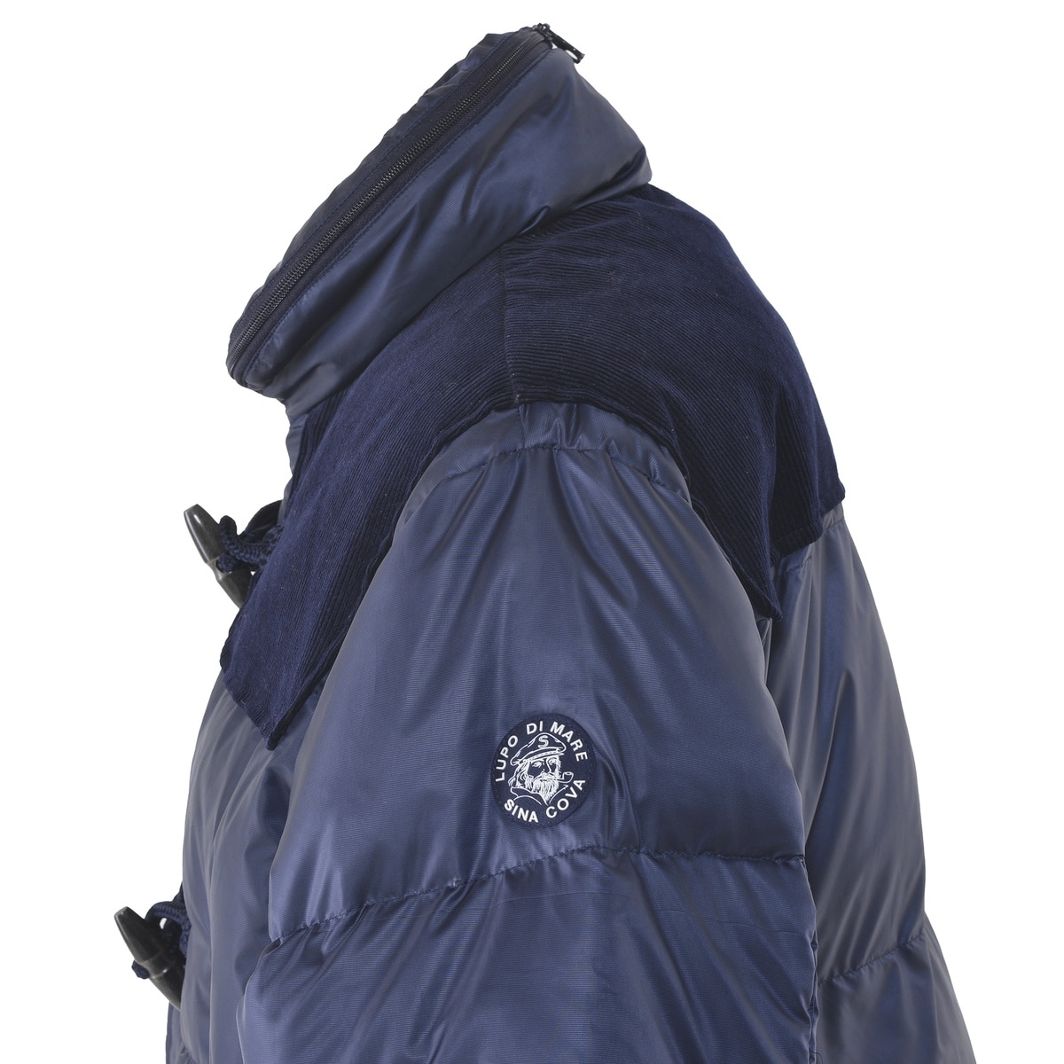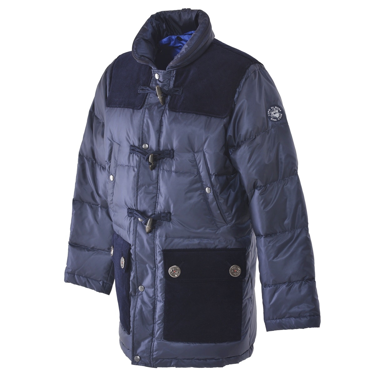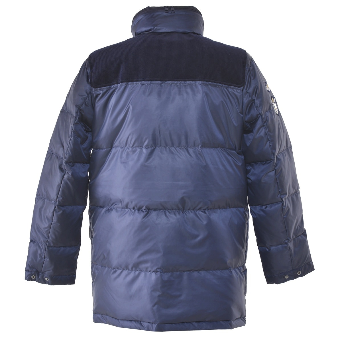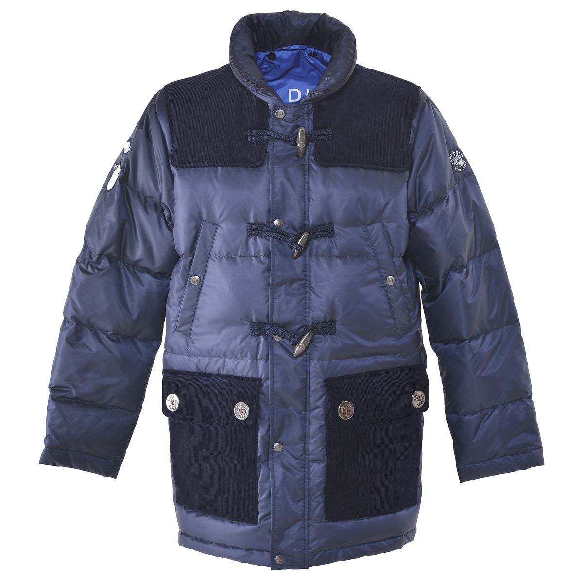 右袖に2種類のワッペン、背裏にはシンボルマークのロゴをプリントしたクルージングハーフダウンコートです。