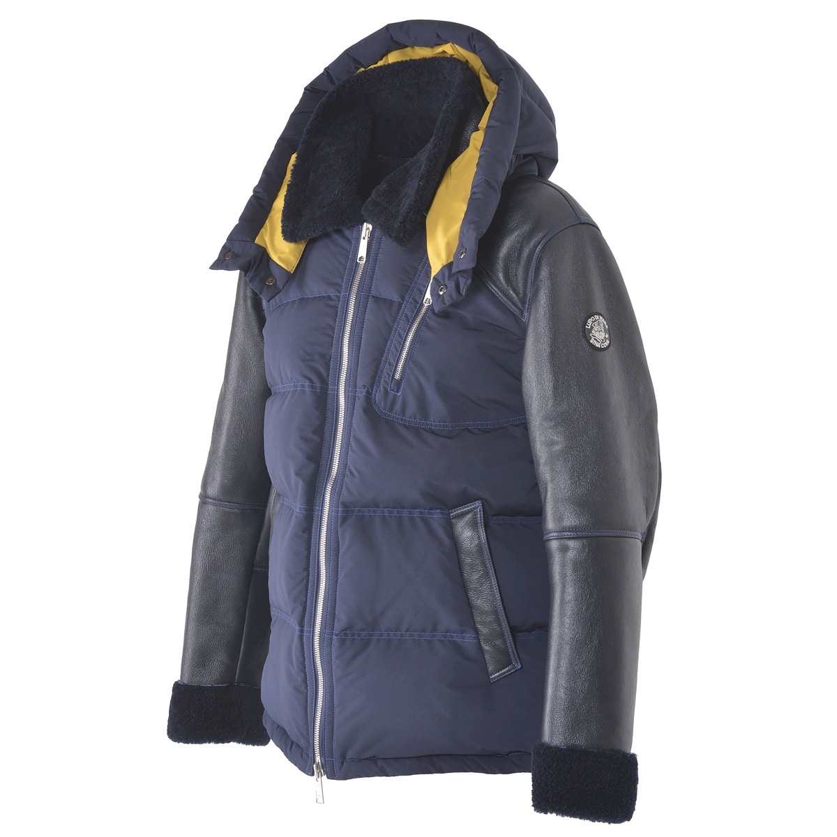 スペインラム・メリノ種でスペインの気候や環境に適応するように改良された羊革の中でも最も柔らかく、毛質も均一に保たれおり、耐久性にも優れているムートンと、高密度でありながら肉厚も厚すぎず、薄すぎないソフトで滑らかな風合いの生地を使ったダウンとのハイブリット仕様の商品です。この仕様にすることで、高級感がありながらダウンの軽さとムートンの贅沢さを感じて頂きたいハーフコートに仕上げています。袖にはワッペン付き。【SINA COVA 2024 Autumn & Winter Style Book】掲載商品モデル着用カラー:ベージュ男性 身長:180cm / 着用:L size
