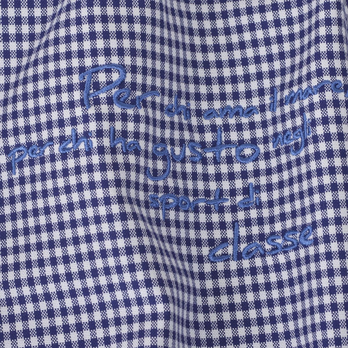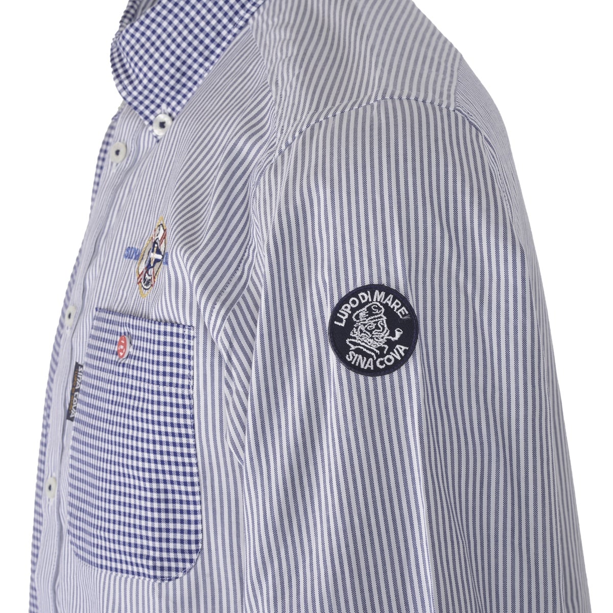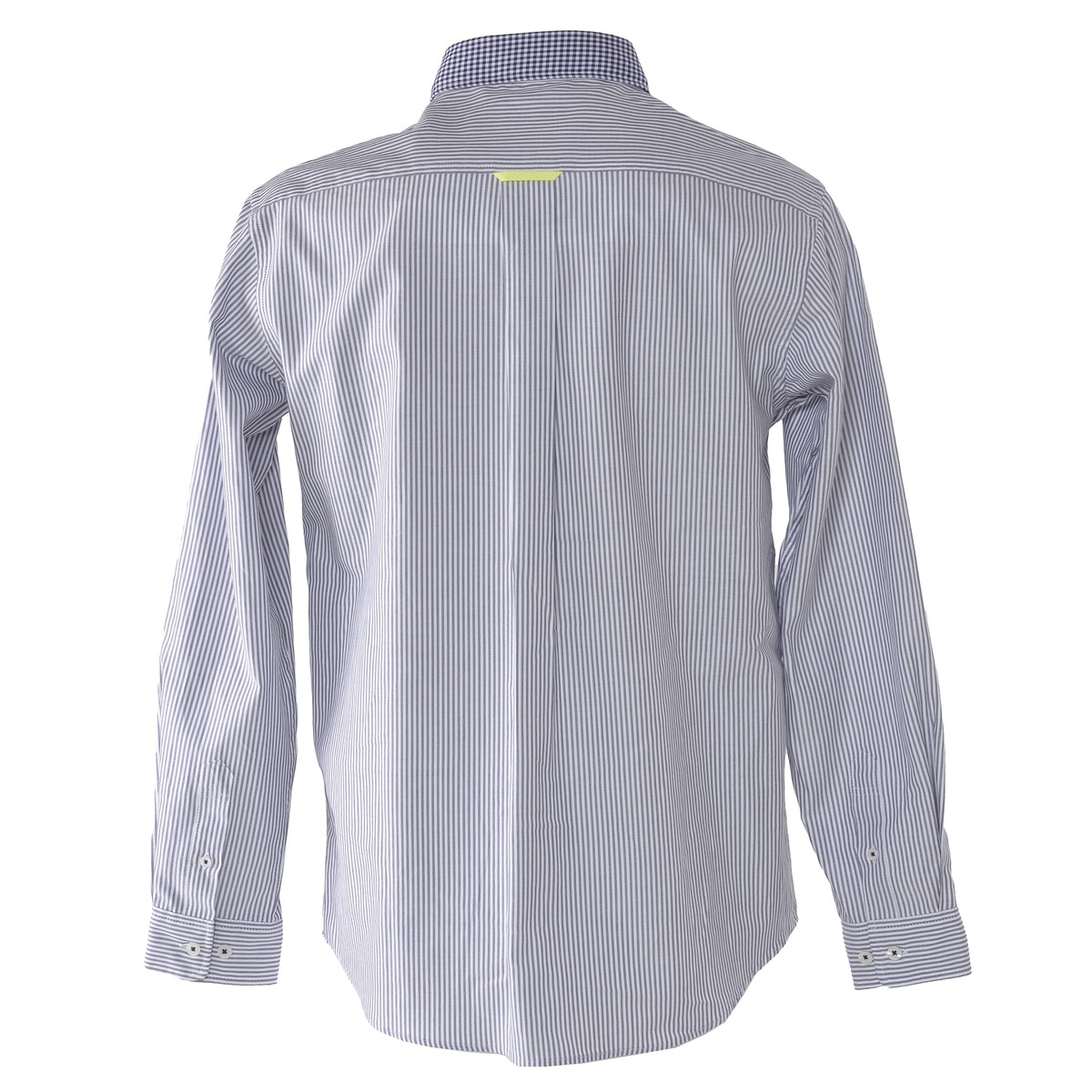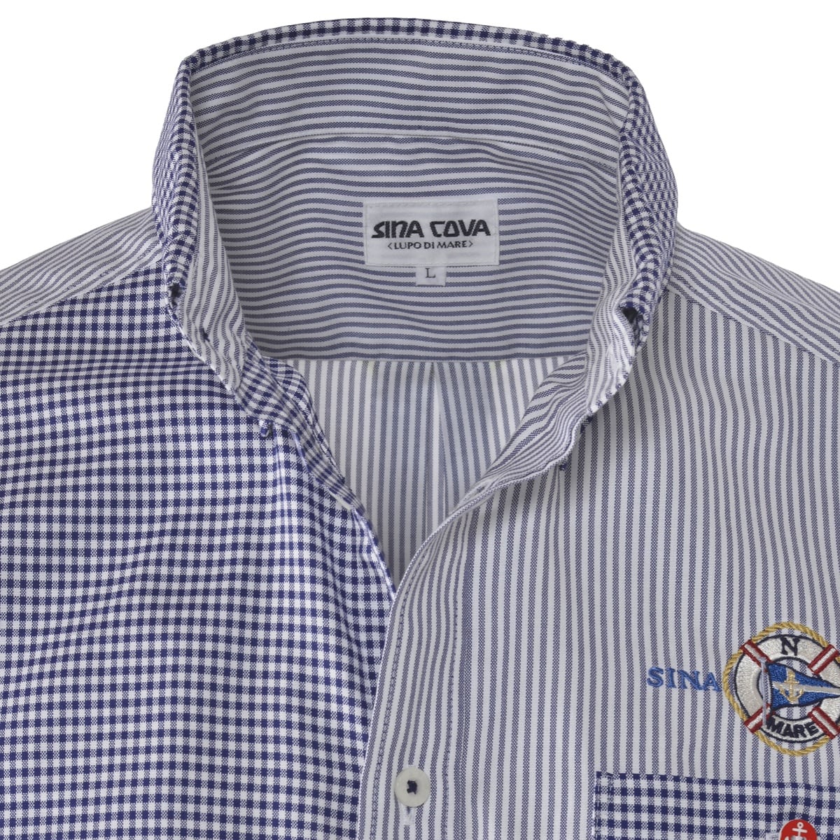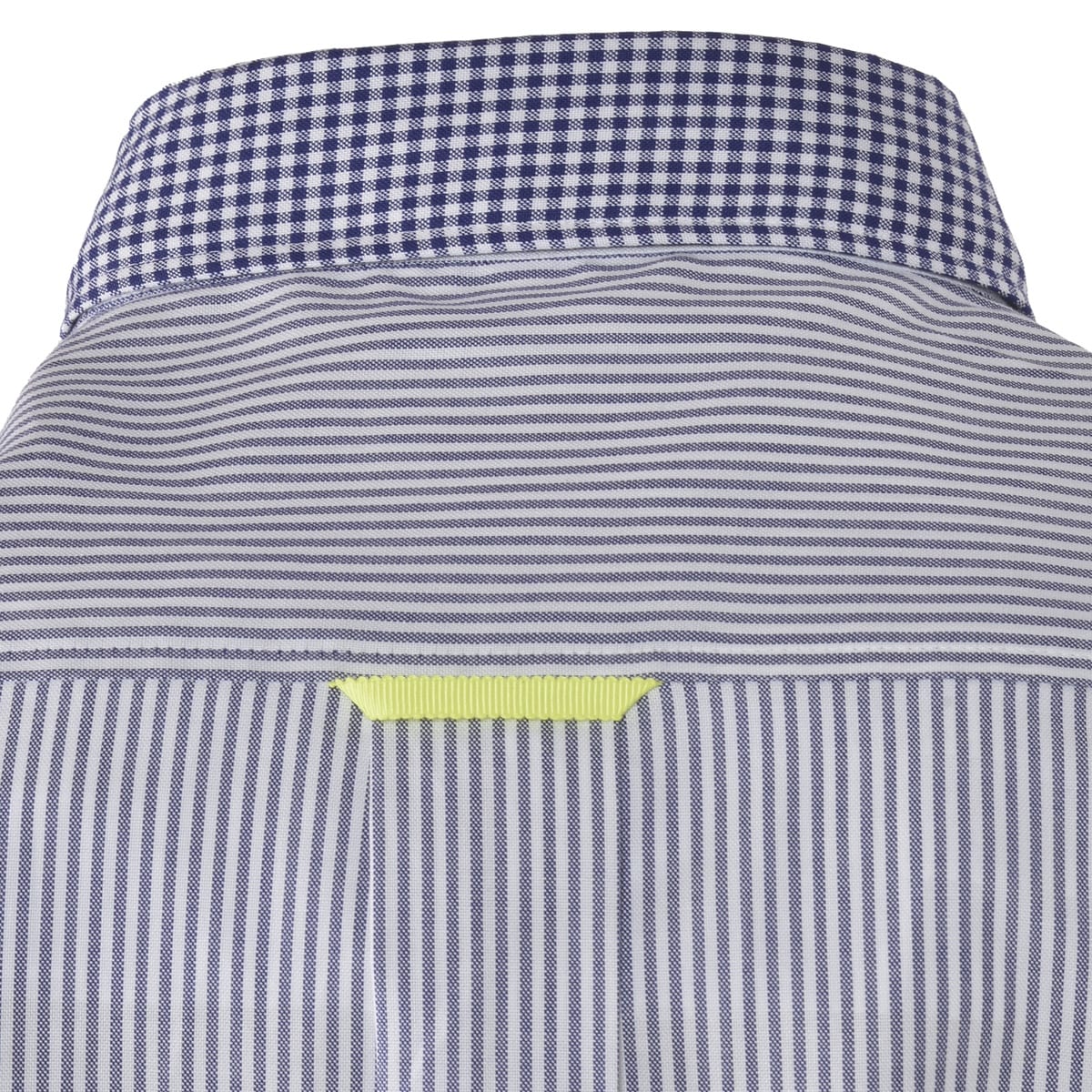 ギンガムチェックとストライプ柄を切替で仕上げたボタンダウンシャツ。