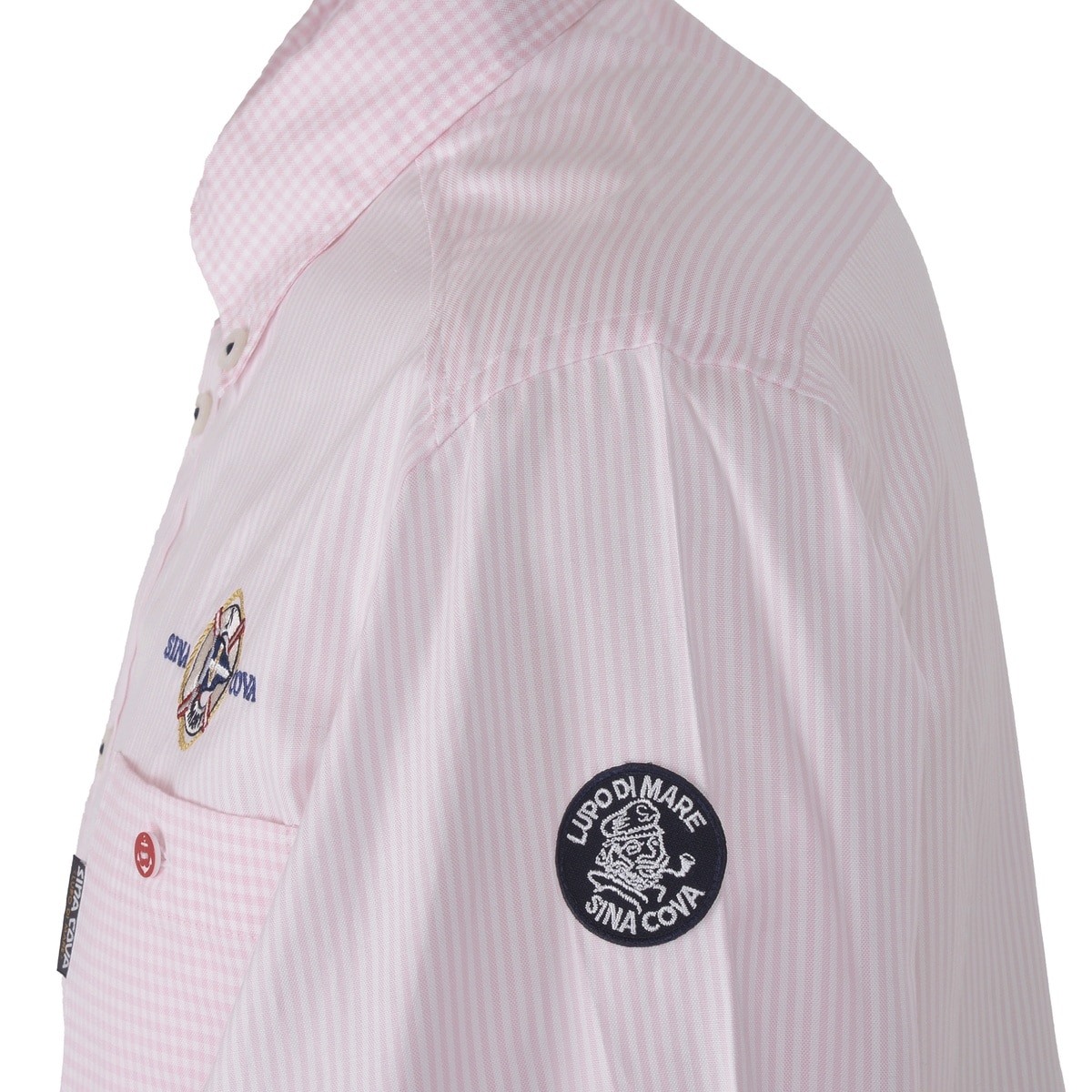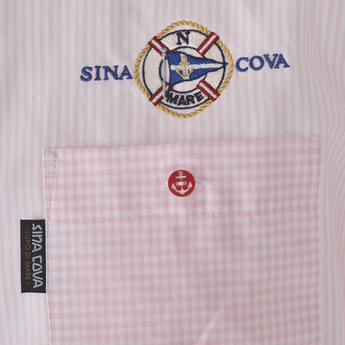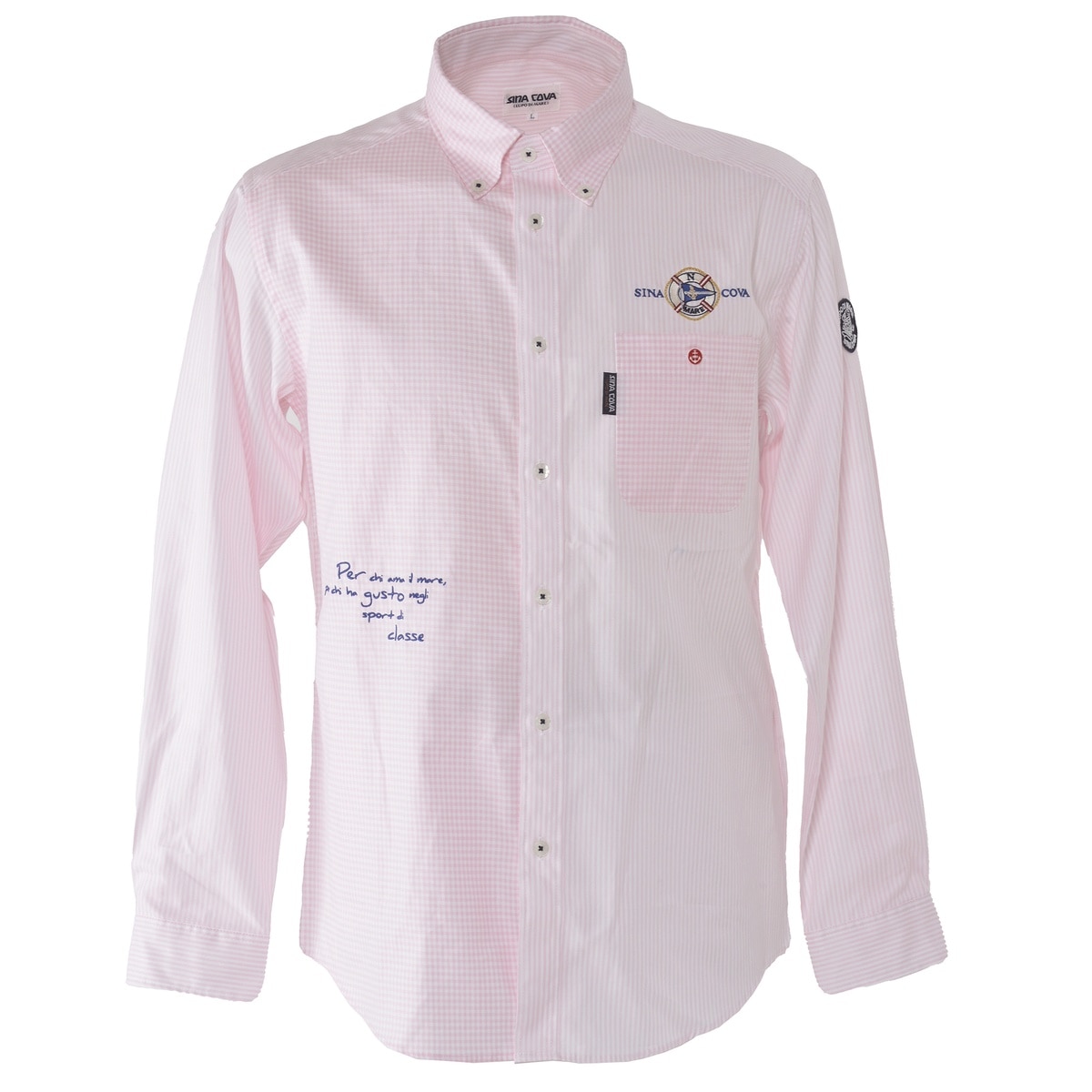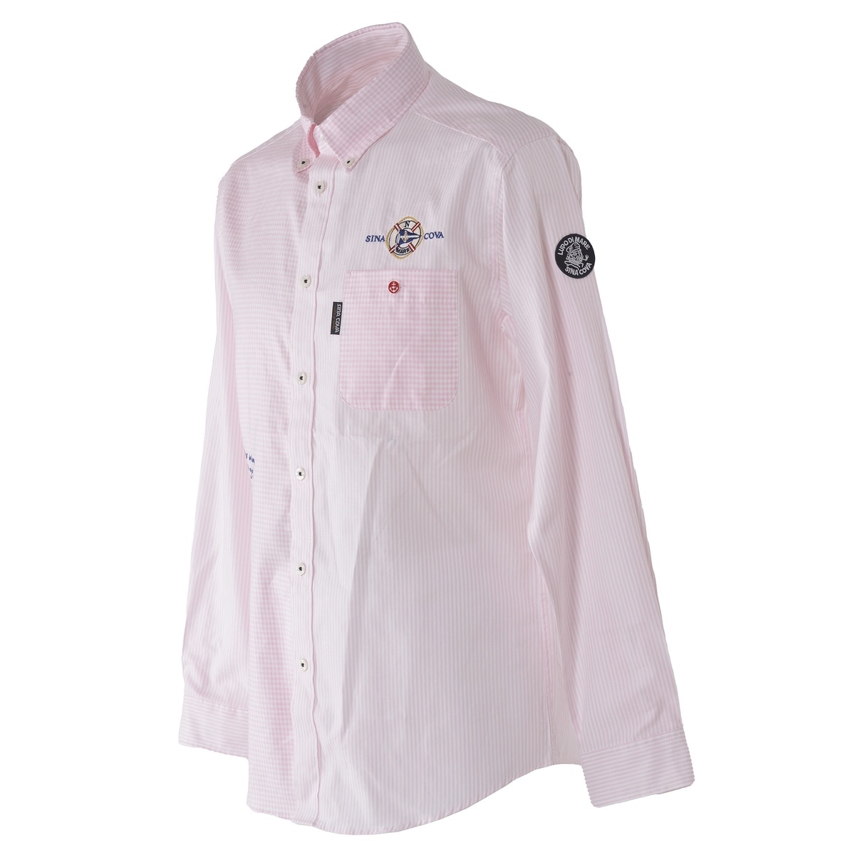 左胸ポケット上と右身頃部分にモチーフと文字の刺繍を施し、シナコバらしさ満点のシャツアイテムです。