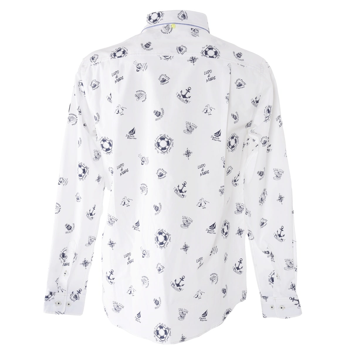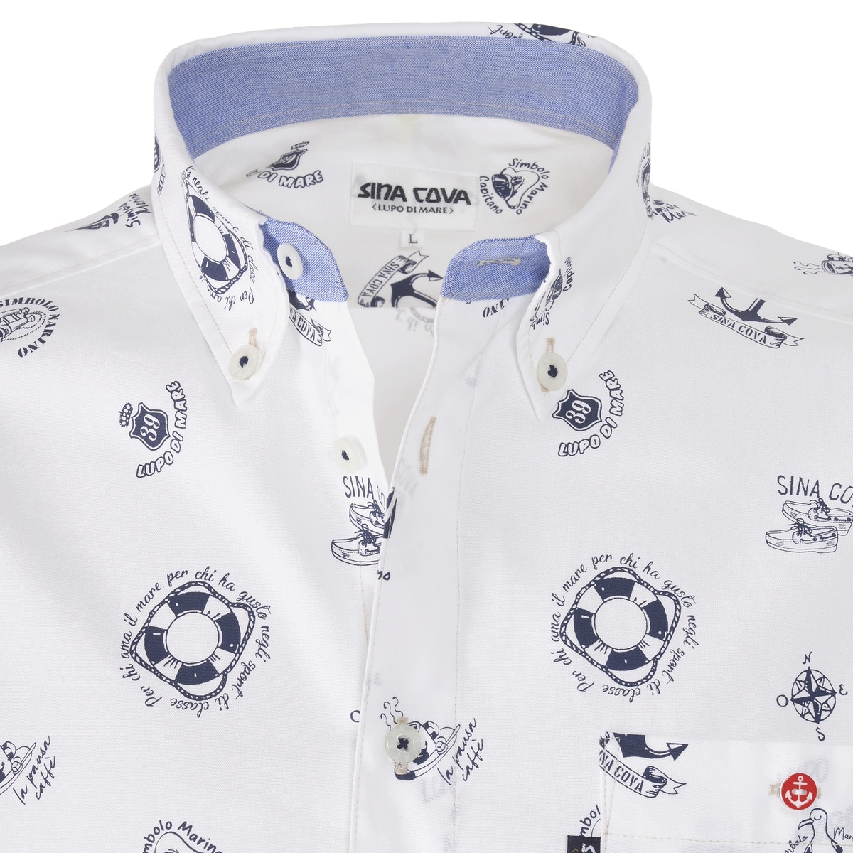 シナコバオリジナルマリンモチーフを総柄でデザインした長袖ボタンダウンシャツです。