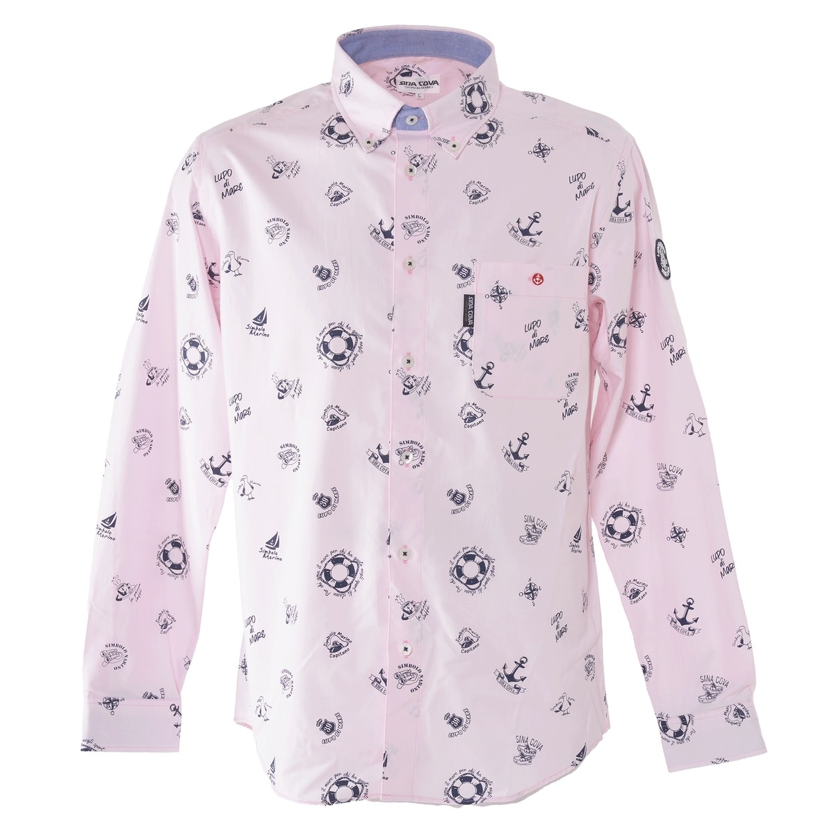 シナコバオリジナルマリンモチーフを総柄でデザインした長袖ボタンダウンシャツです。