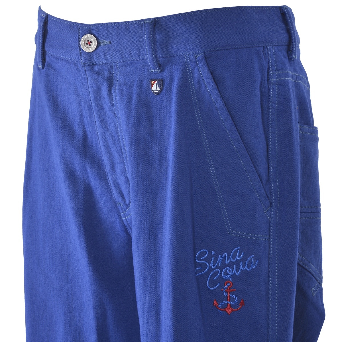 「SINA COVA」ロゴとイカリの刺繍をデザインした裏起毛ノータックパンツです。