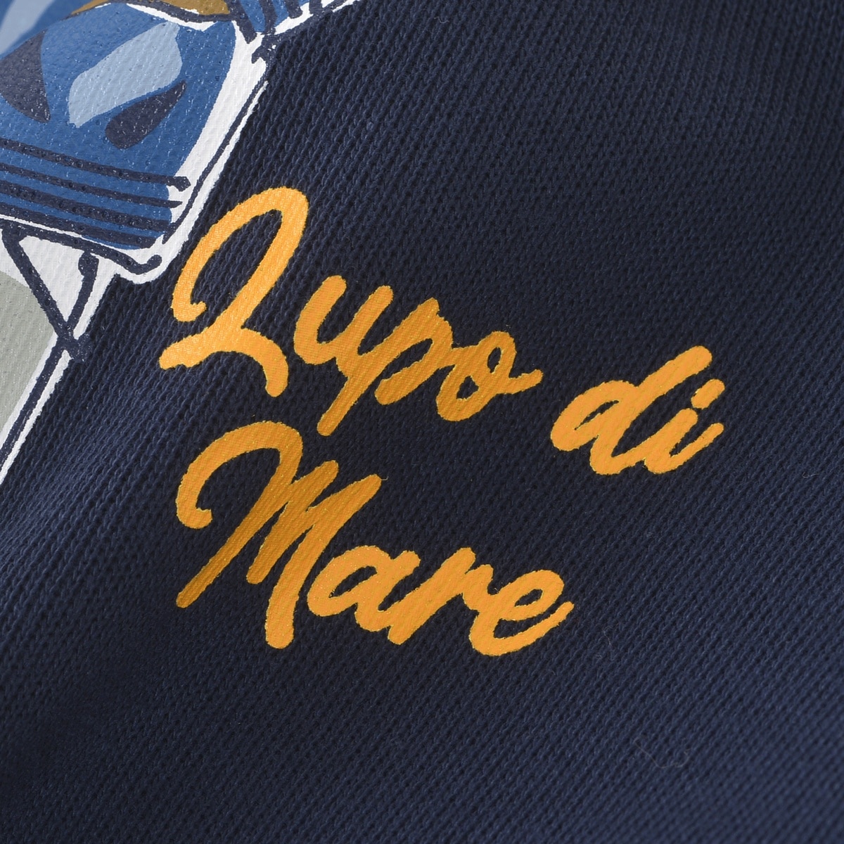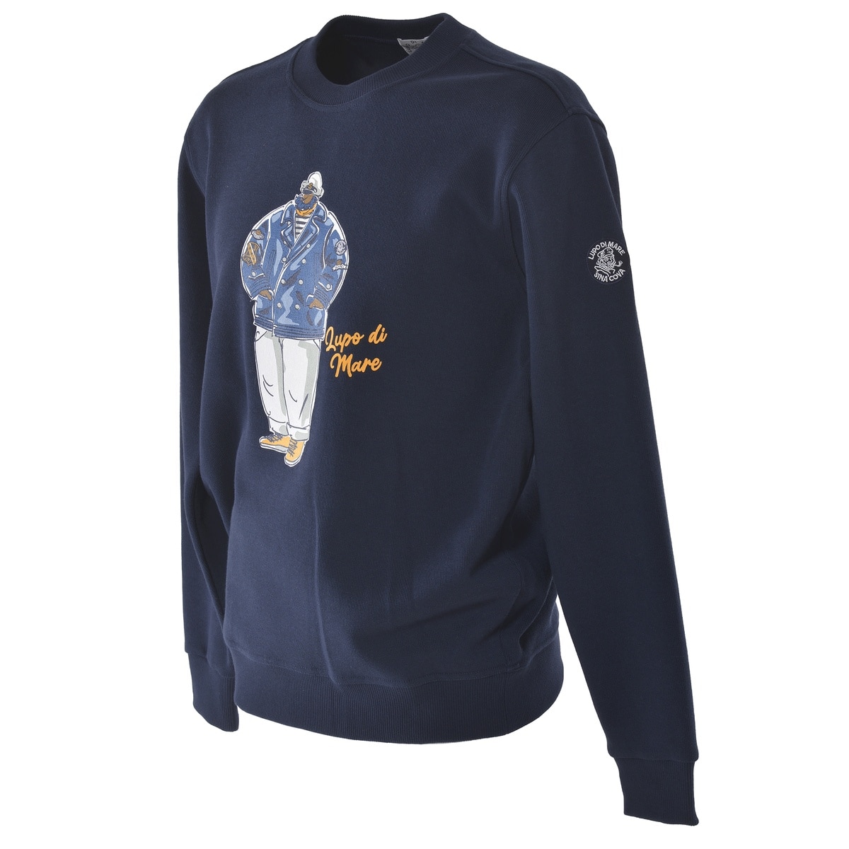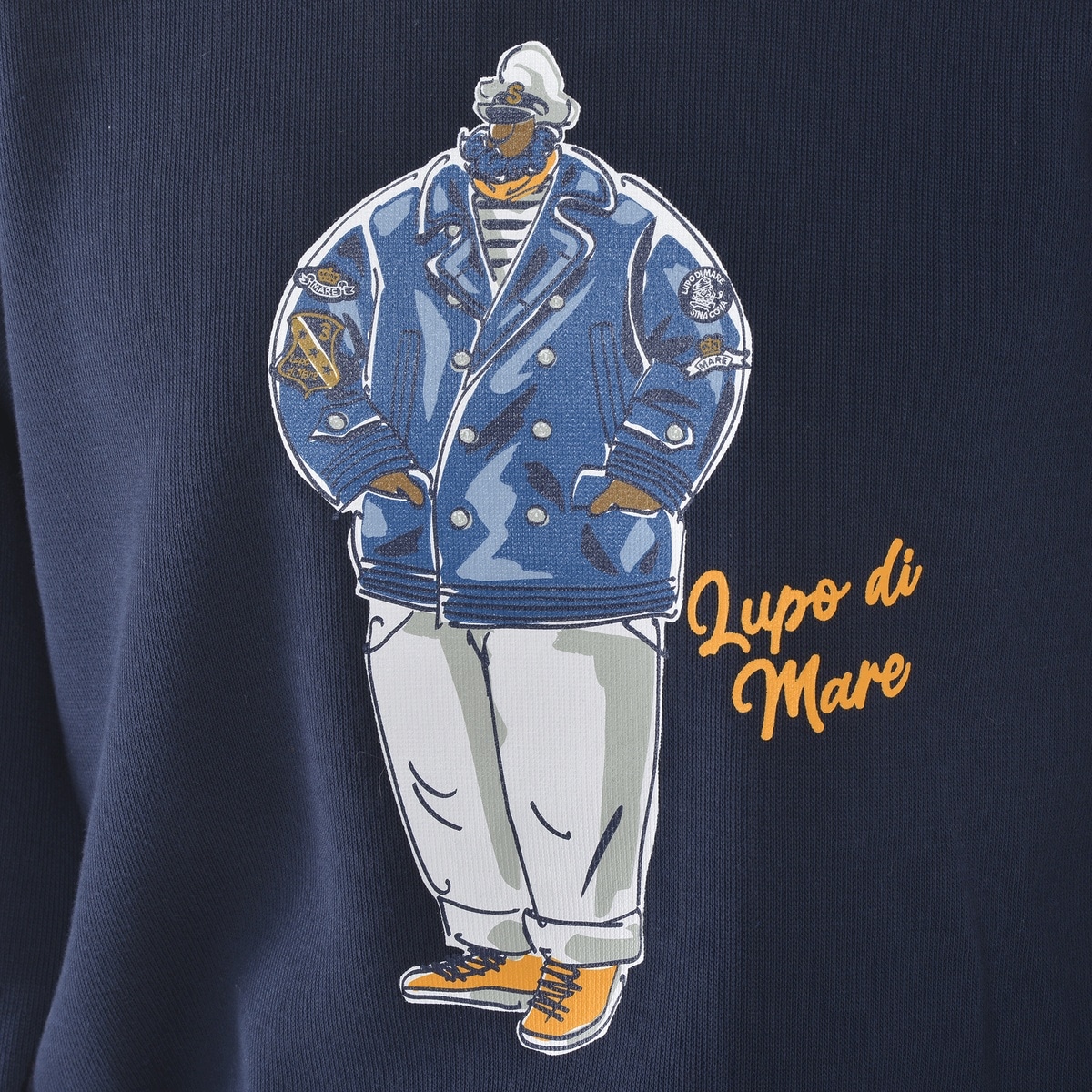 マリンウェアの王道であるPコートを着たキャプテンのイラストプリントをデザインしたクルーネックTシャツです。