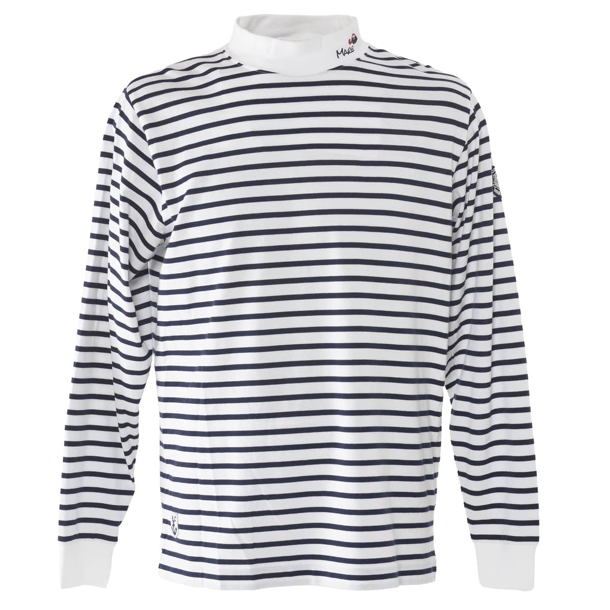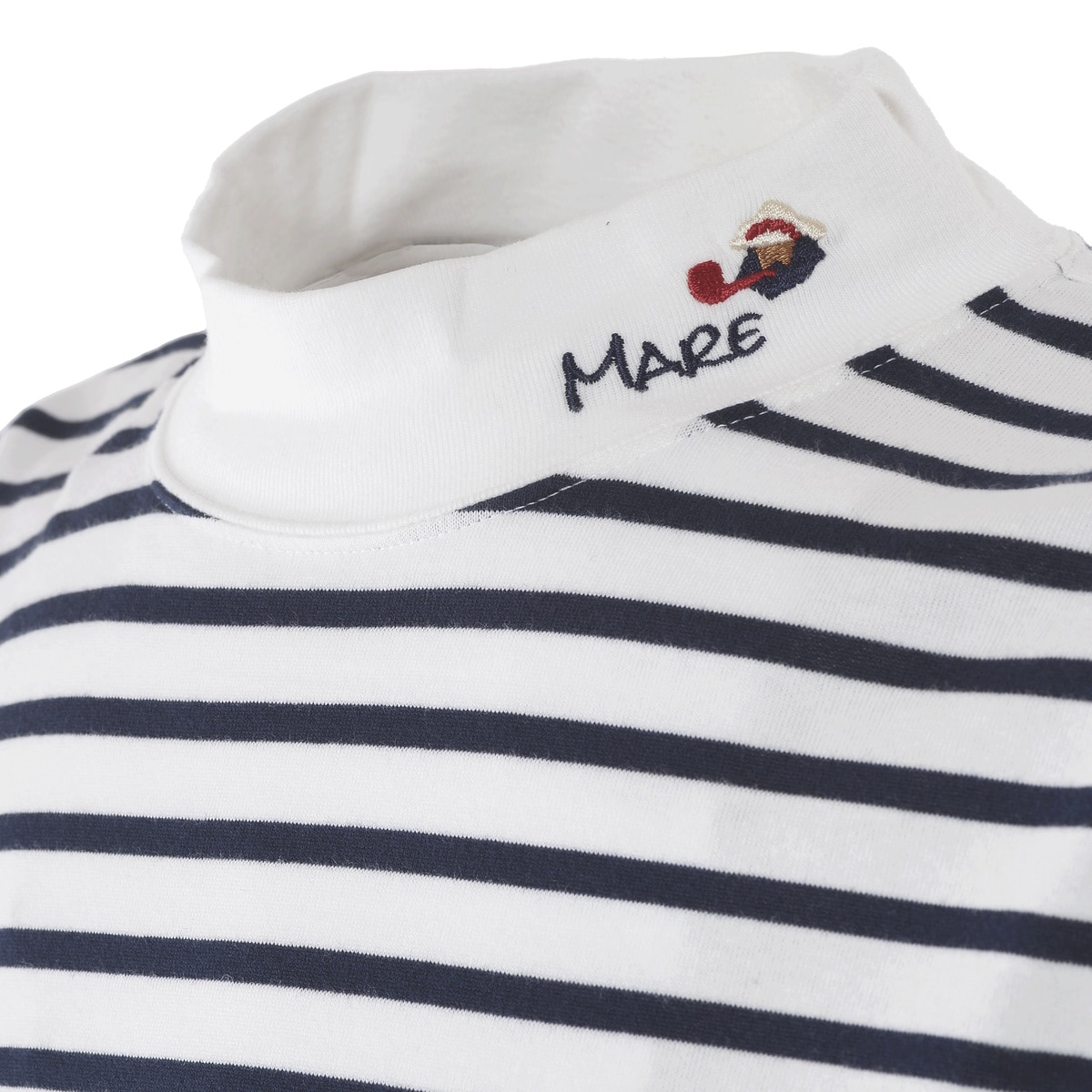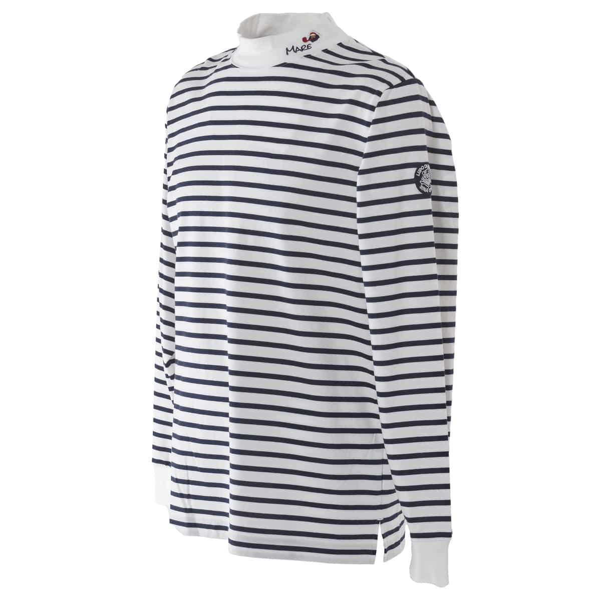 衿部分にキャプテン刺繍を施したハイネックボーダーの長袖Tシャツです。