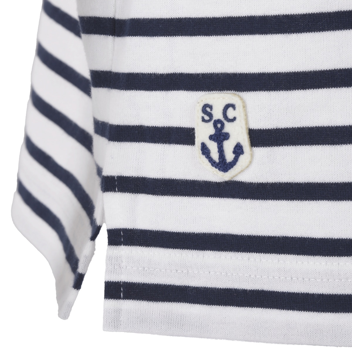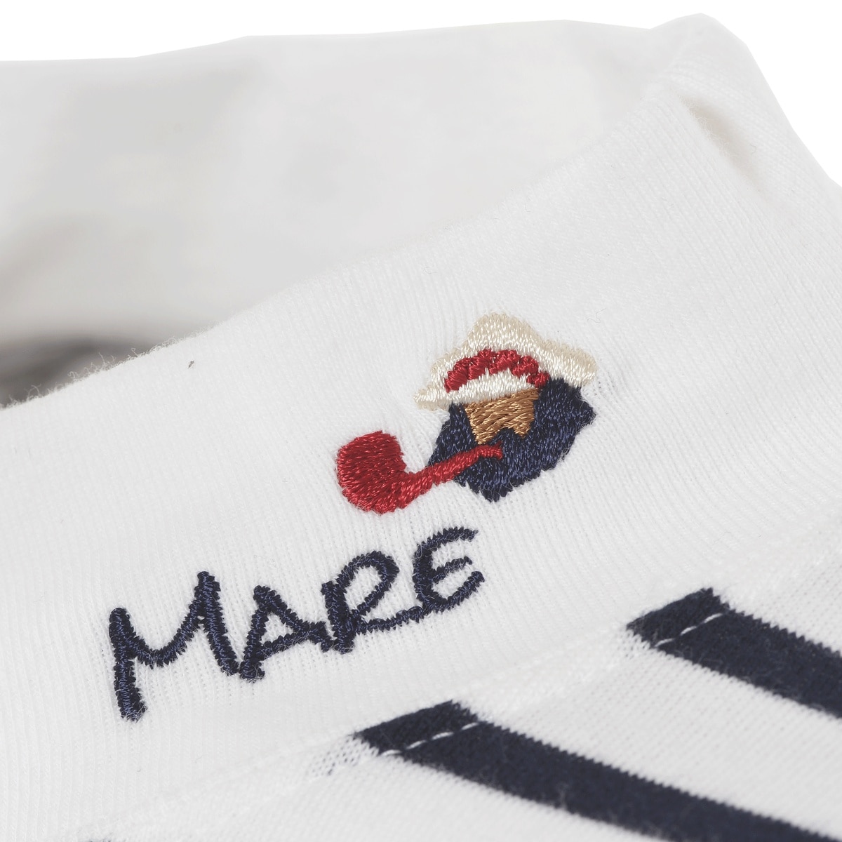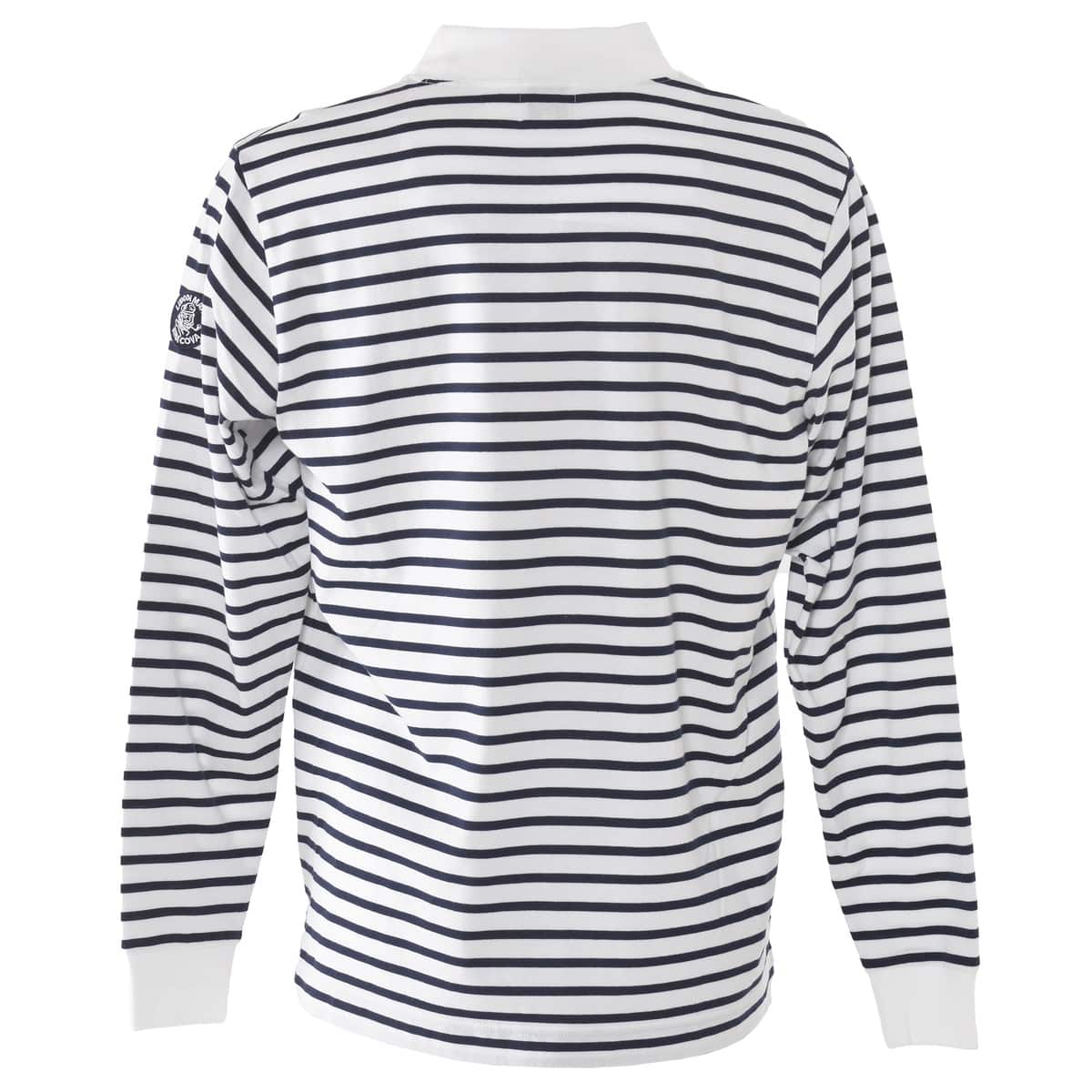 衿部分にキャプテン刺繍を施したハイネックボーダーの長袖Tシャツです。