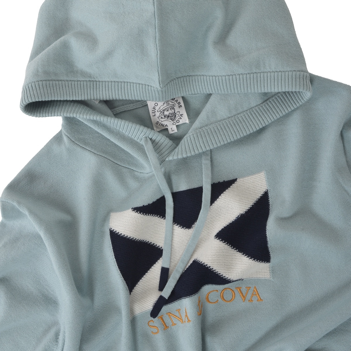 国際信号旗をモチーフをガーター編みでデザインしたニットバーカーです。