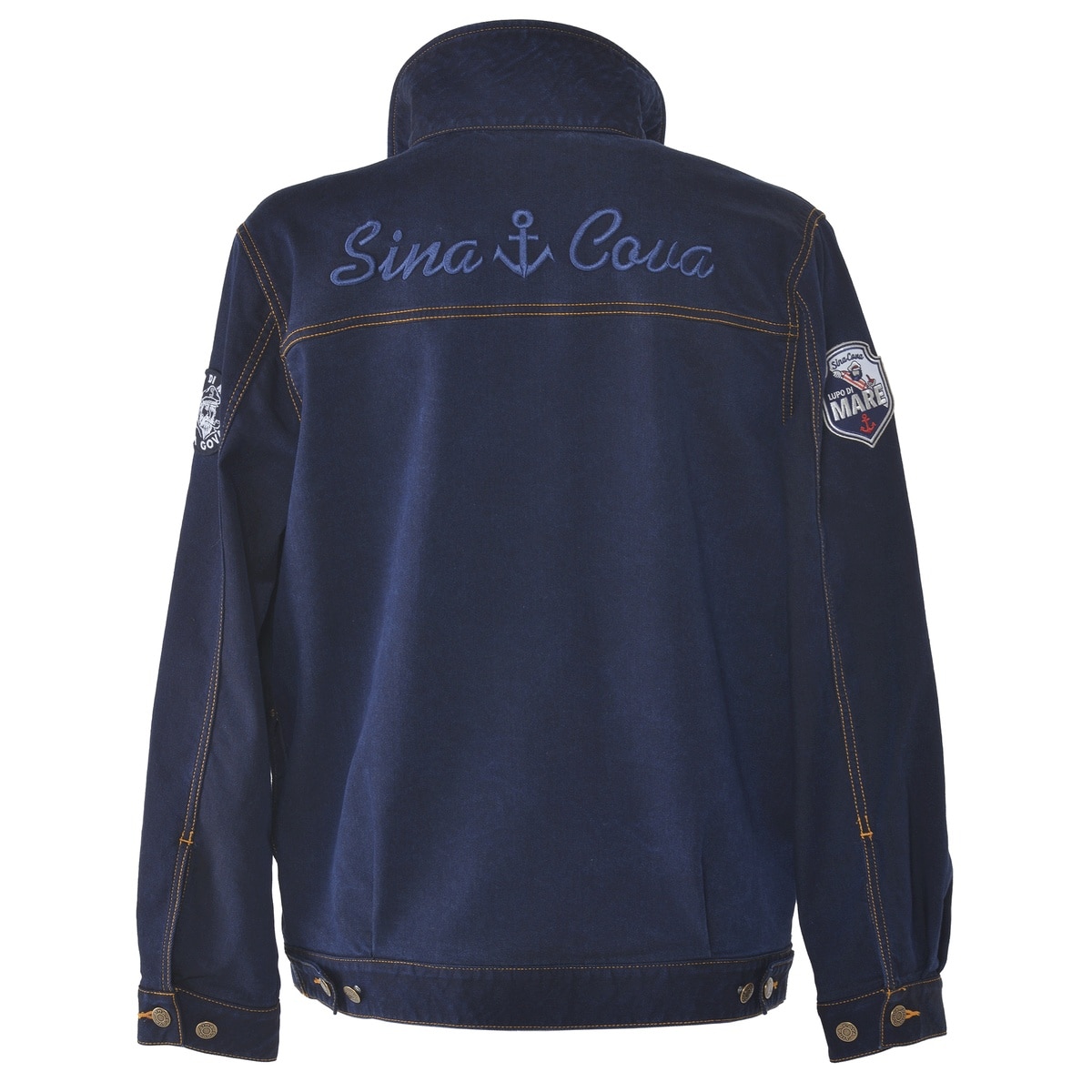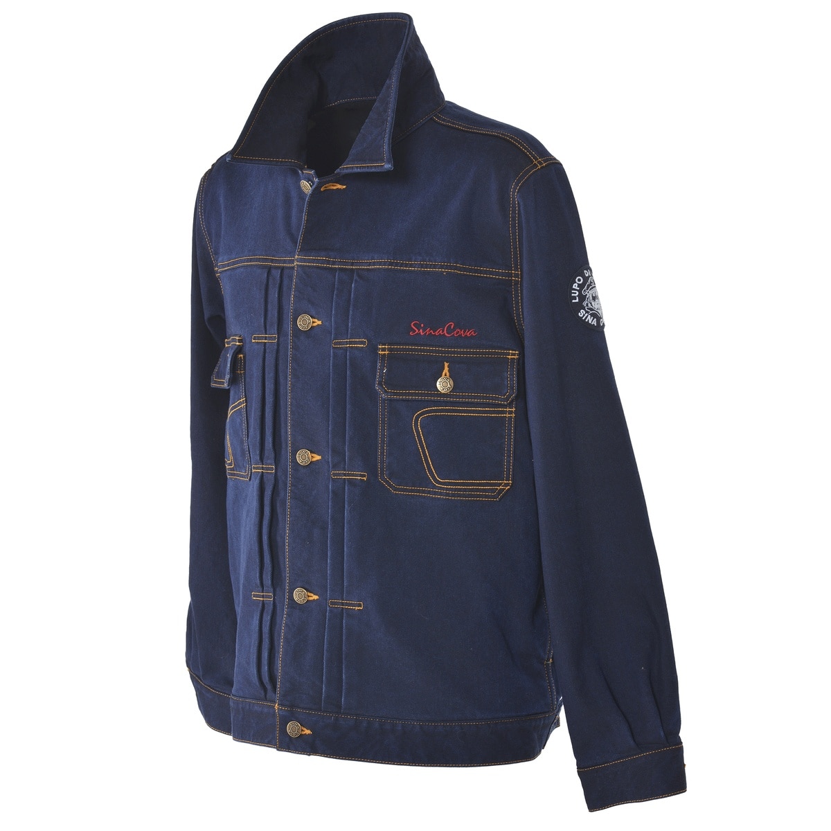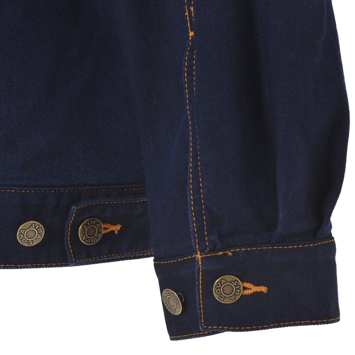 フロントパッチポケットに「S」「C」ステッチ、右袖にエンブレムワッペン、背ヨークには「SINACOVA」刺繍をデザインしたデニムジャケットです。