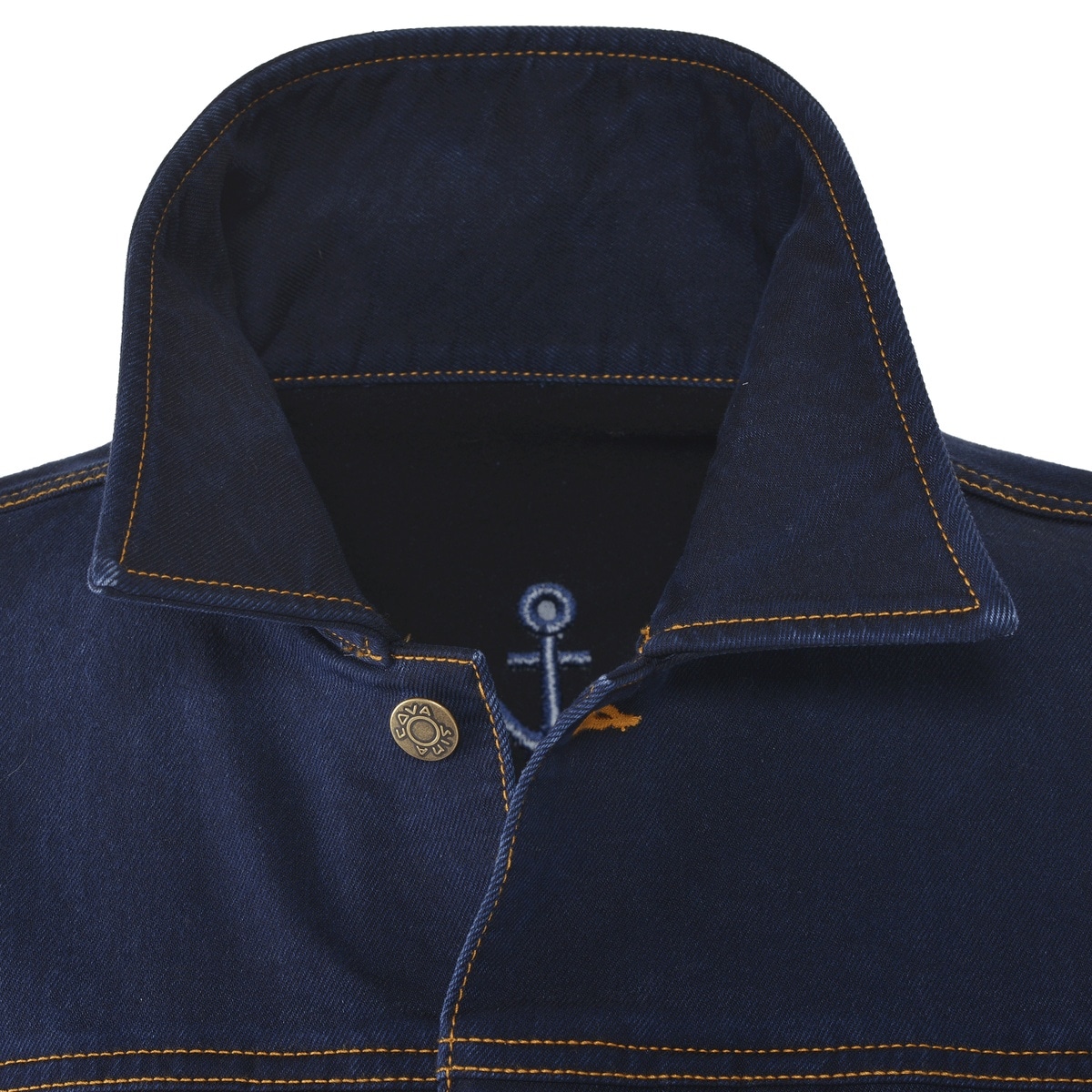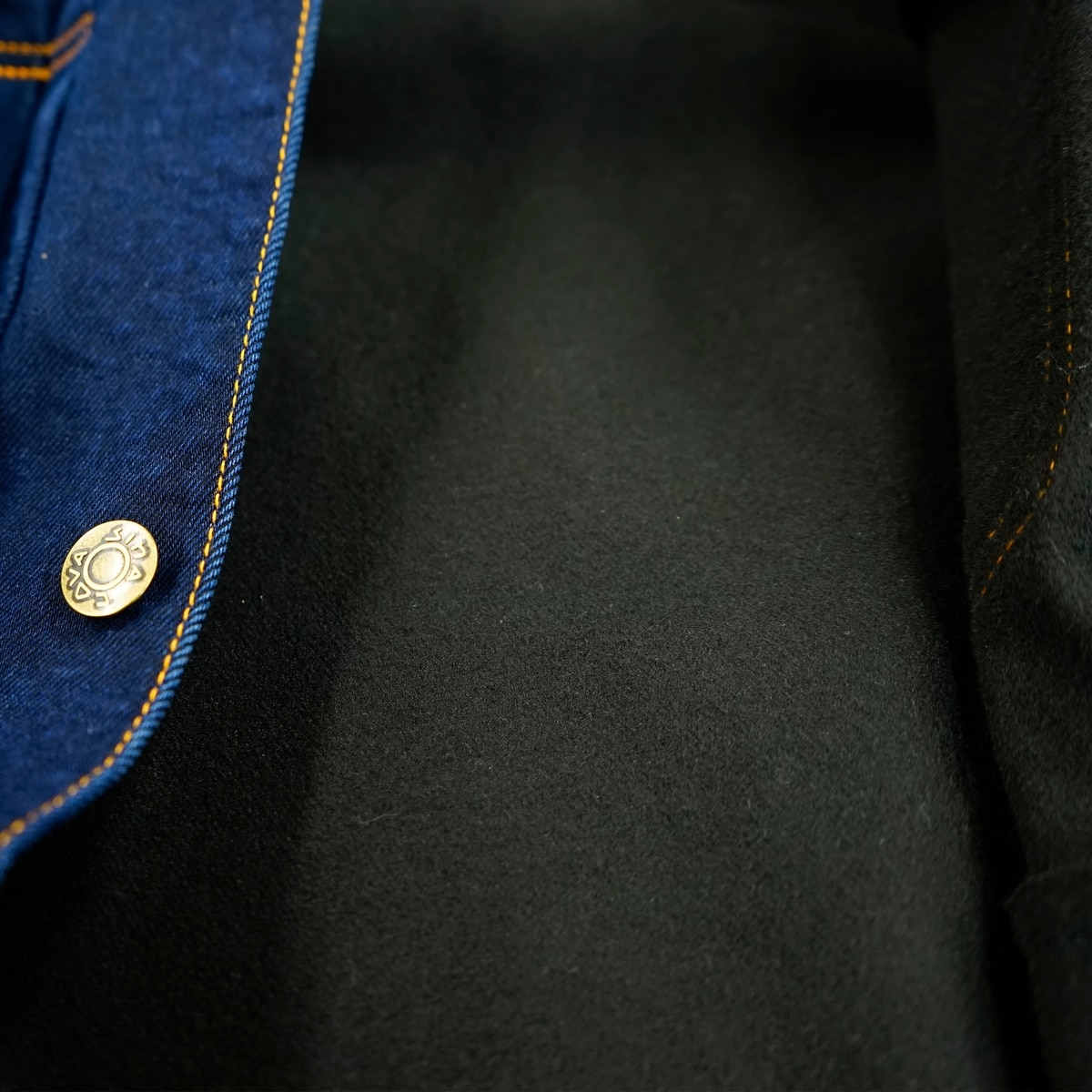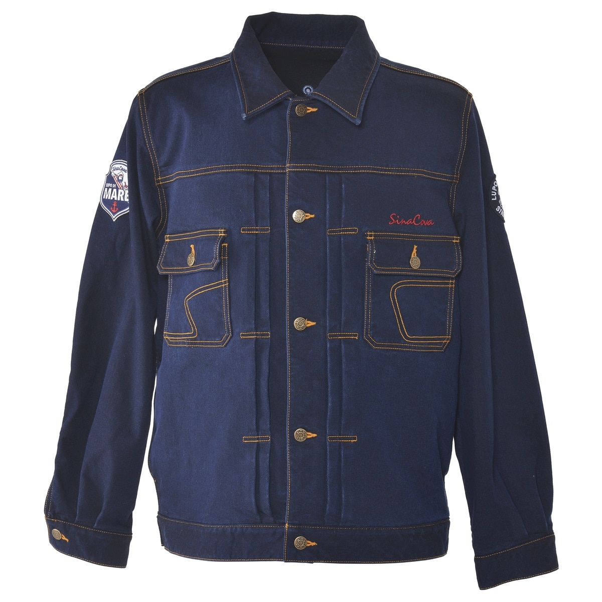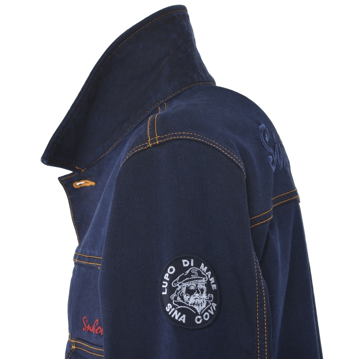 フロントパッチポケットに「S」「C」ステッチ、右袖にエンブレムワッペン、背ヨークには「SINACOVA」刺繍をデザインしたデニムジャケットです。