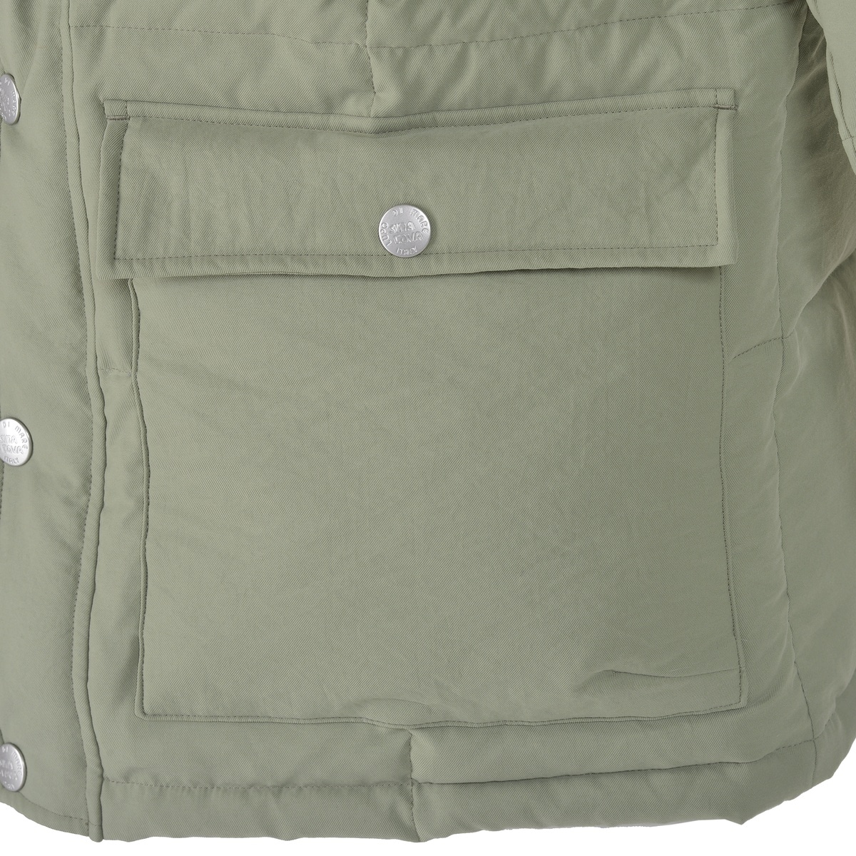 ウエスト部分にはウエストを絞れ風の侵入を抑えられるドローコード付き、生地には撥水加工も施しておりシンプルデザインで高機能のアウターです。
