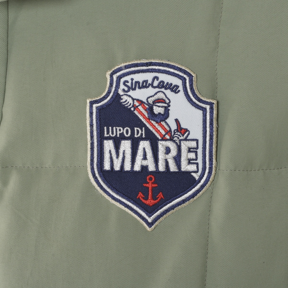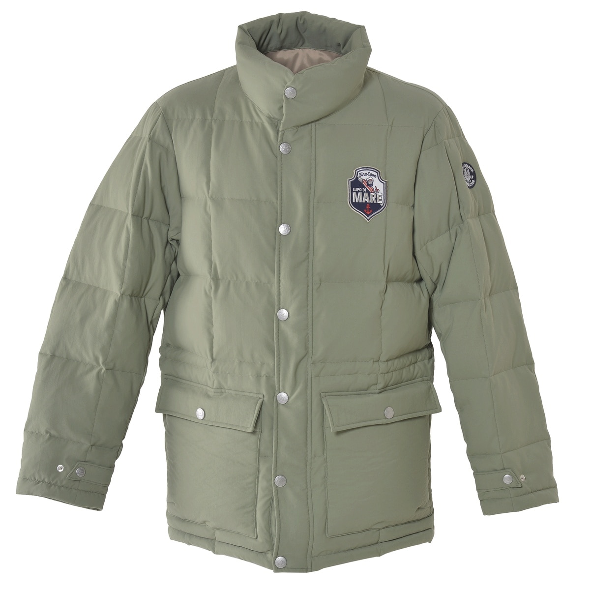フロントにキャプテンモチーフのワッペン、背裏にシナコバシンボルロゴをプリントでデザインしたダウンハーフコートです。