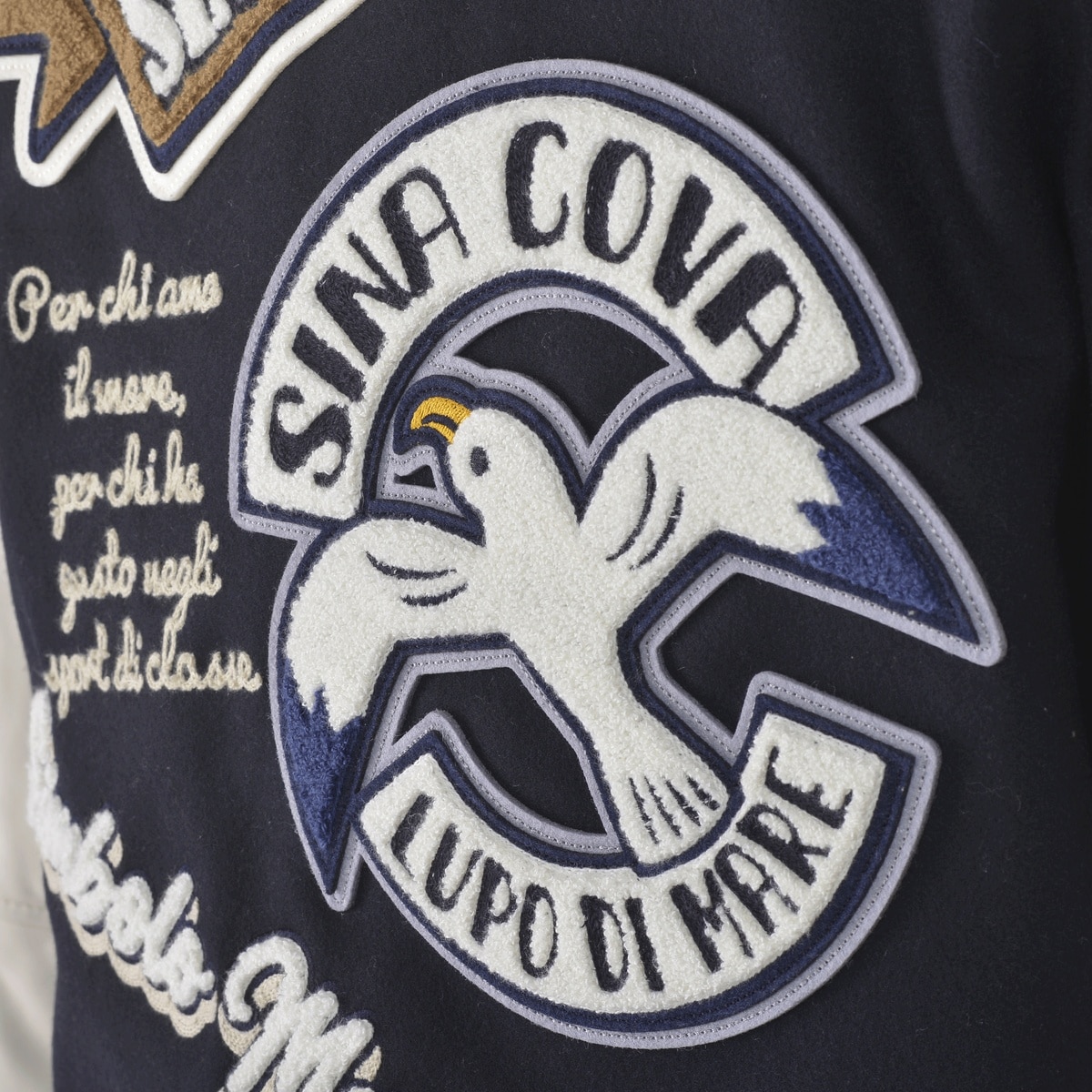 SINACOVA刺繍ワッペンをふんだんに使用しシナコバらしさを出したスタジアムジャンパーです。
