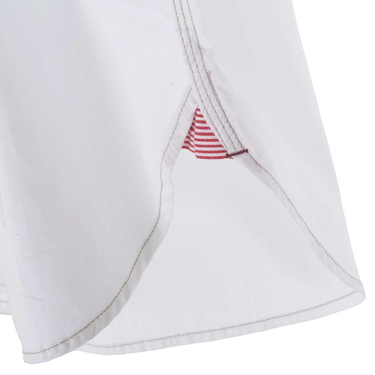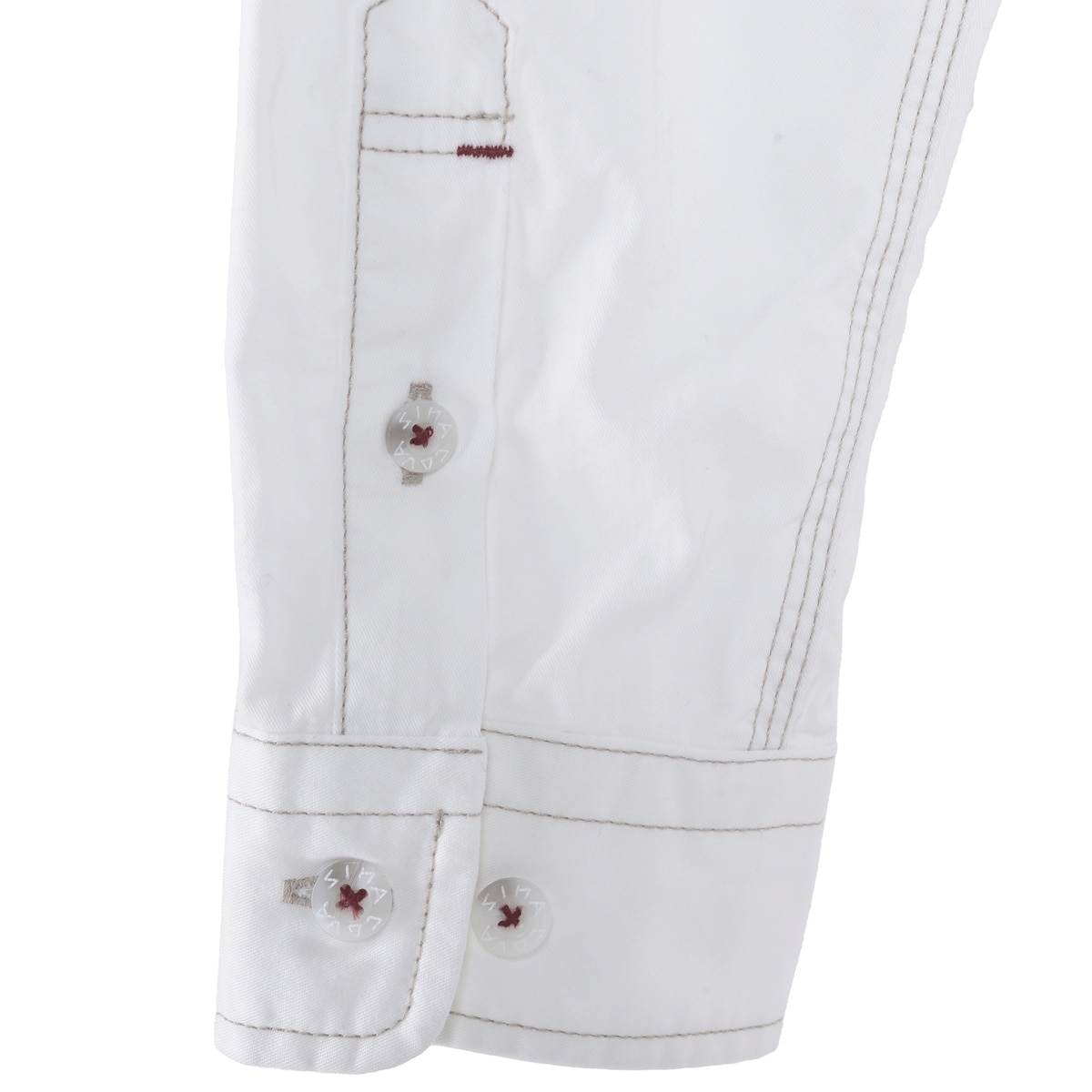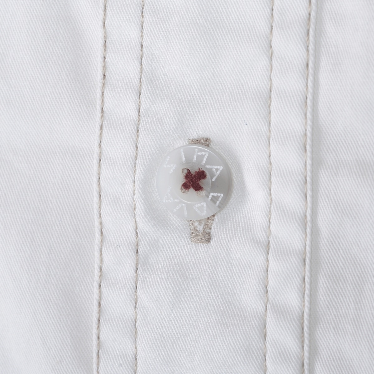 ・ワークシャツ特有のトリプルステッチとガゼット部分にはレッドのストライプ生地使用