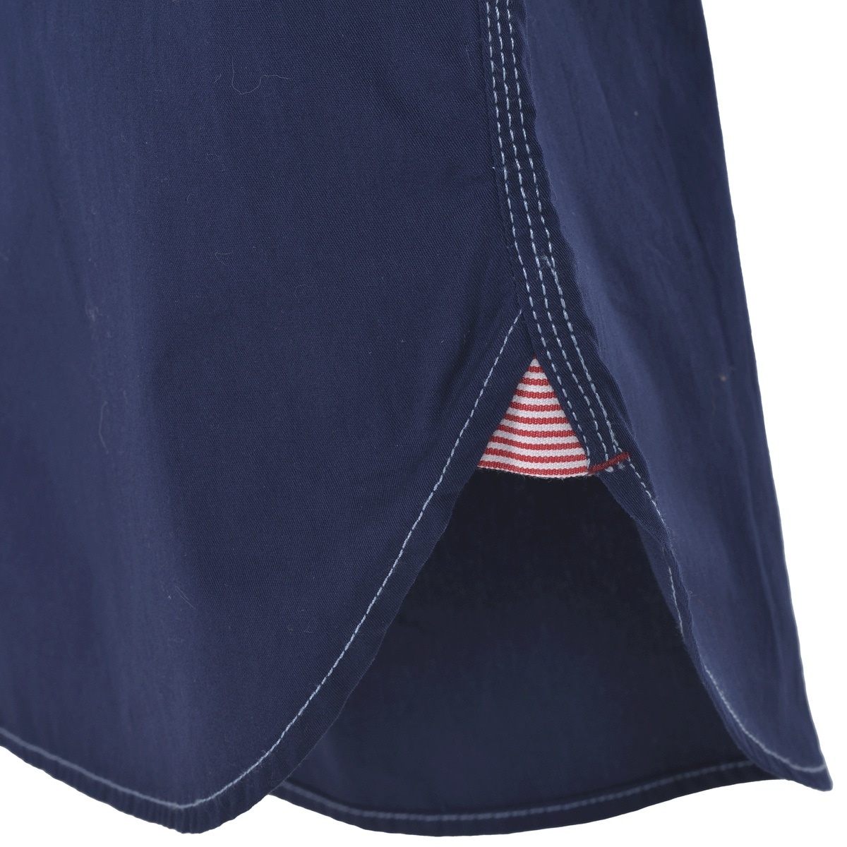 ・ワークシャツ特有のトリプルステッチとガゼット部分にはレッドのストライプ生地使用