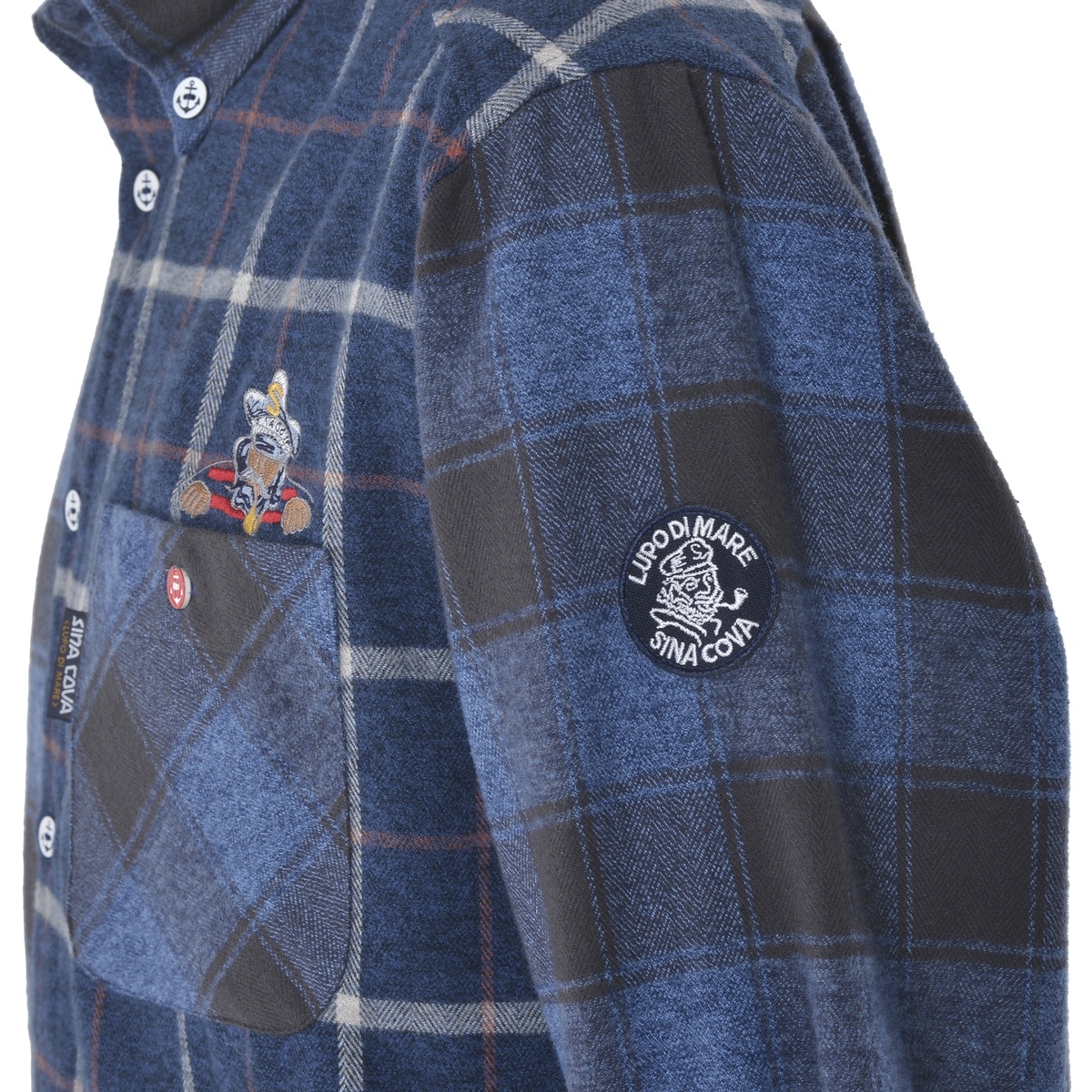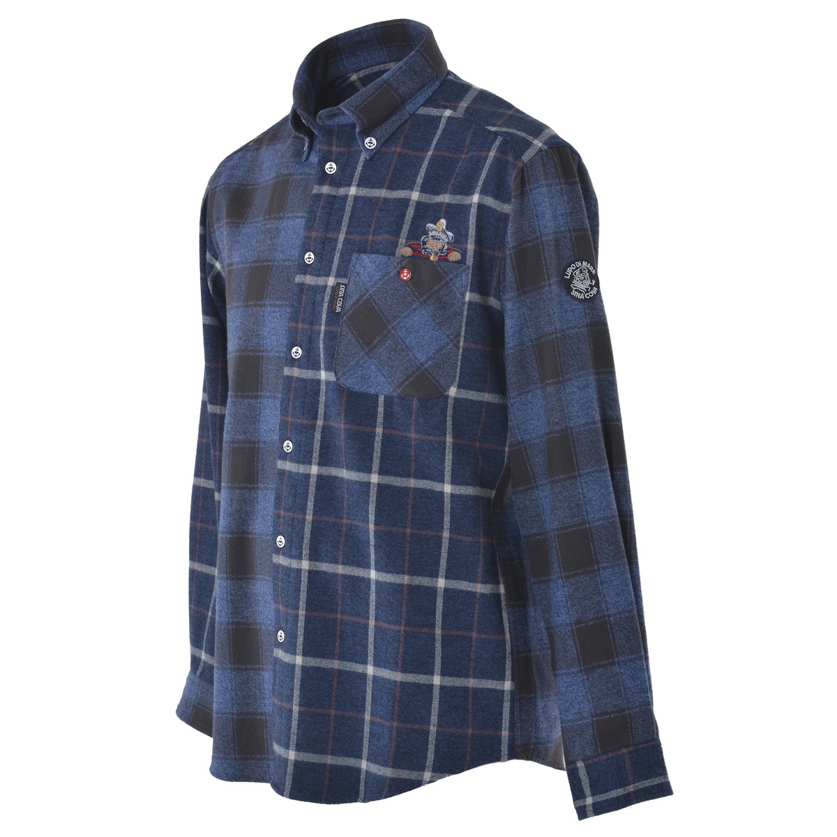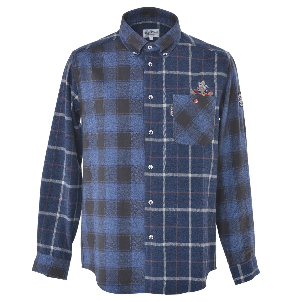 キャプテンが左ポケットから覗いているような刺繍をデザインしたクレイジーパターン長袖チェックシャツです。