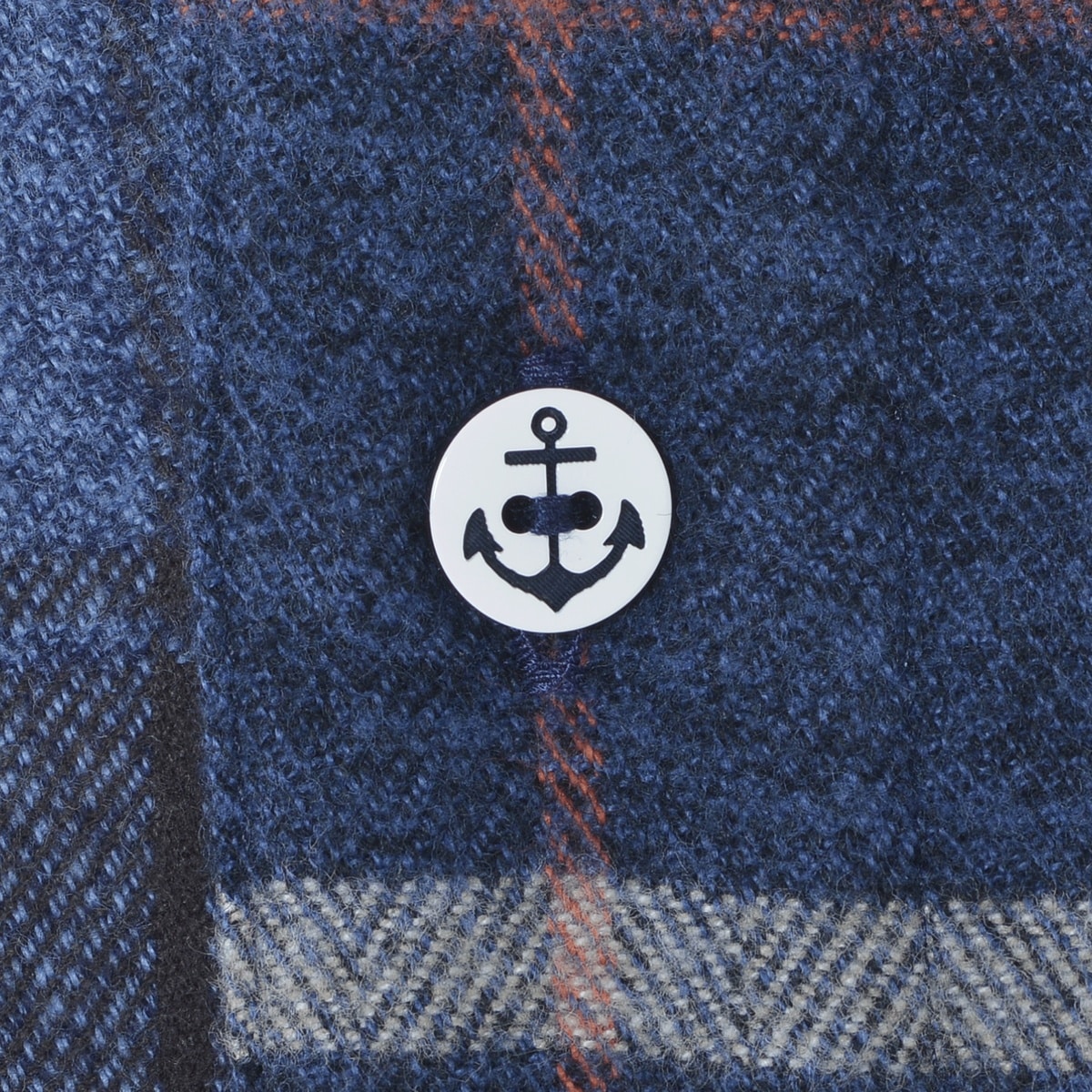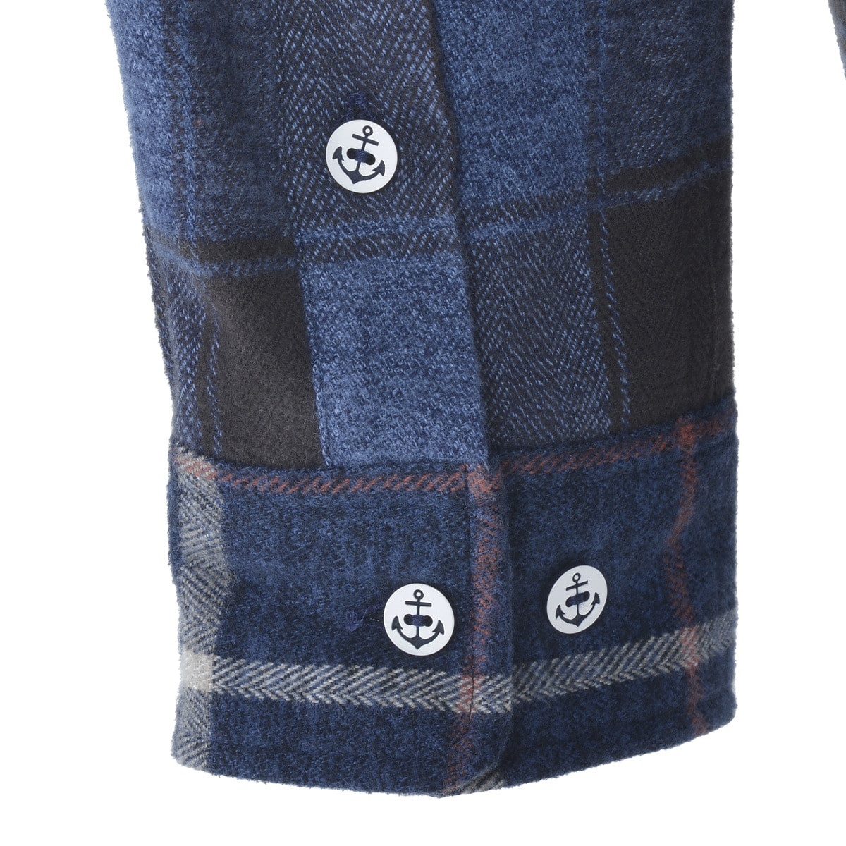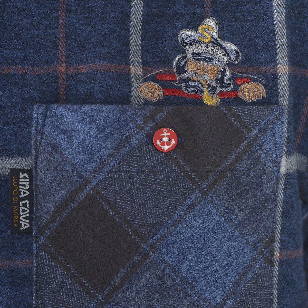 キャプテンが左ポケットから覗いているような刺繍をデザインしたクレイジーパターン長袖チェックシャツです。