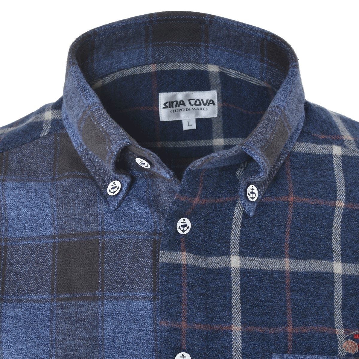 [SINA COVA(シナコバ)]チェック柄クレイジーパターン 長袖ボタンダウンシャツ 24224070 ブルー L