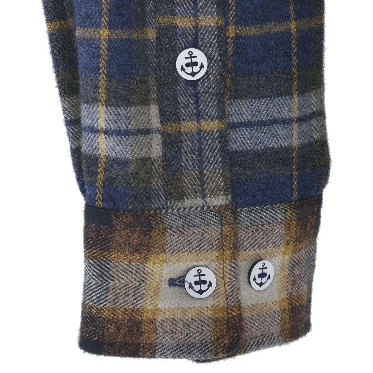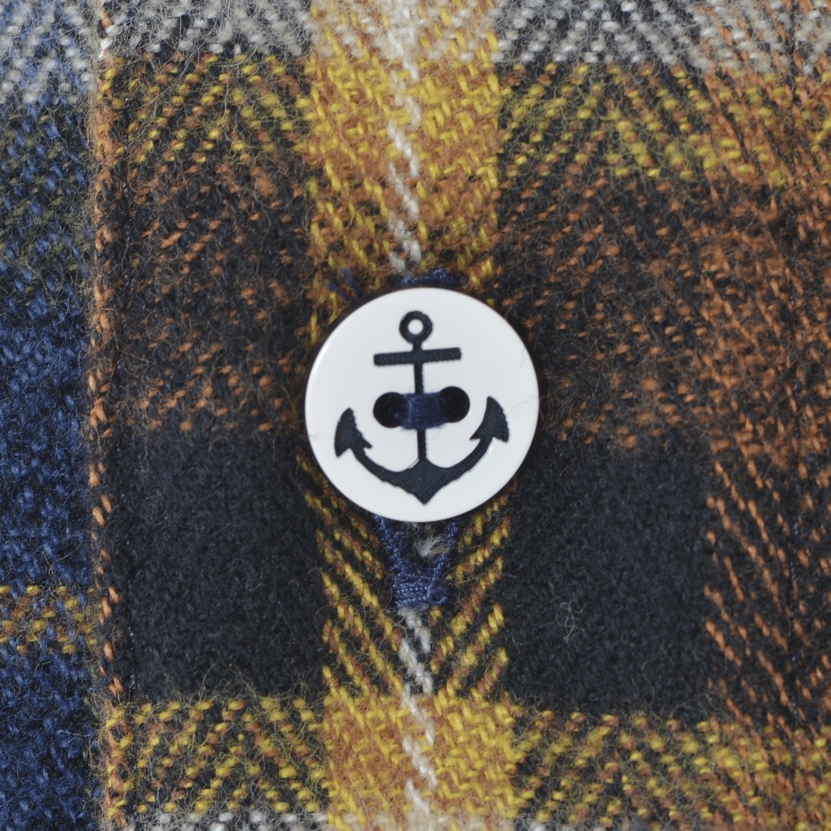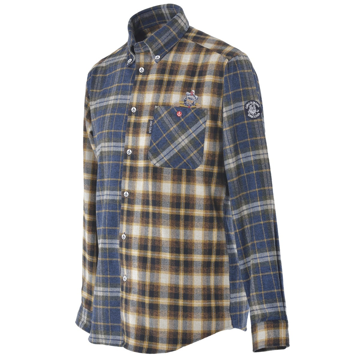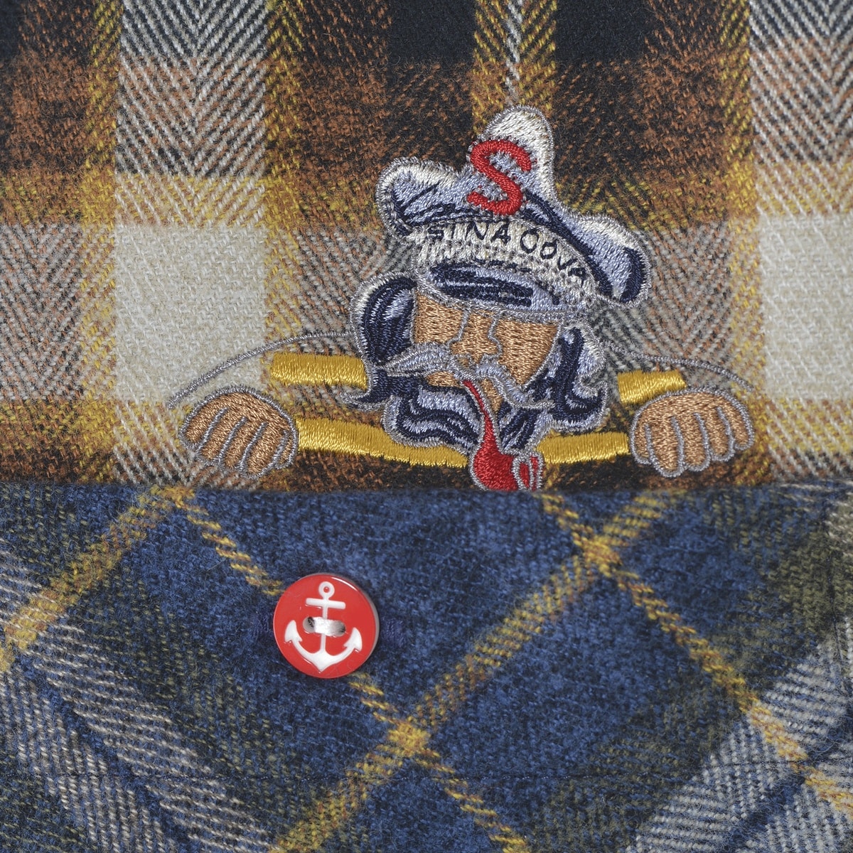 キャプテンが左ポケットから覗いているような刺繍をデザインしたクレイジーパターン長袖チェックシャツです。
