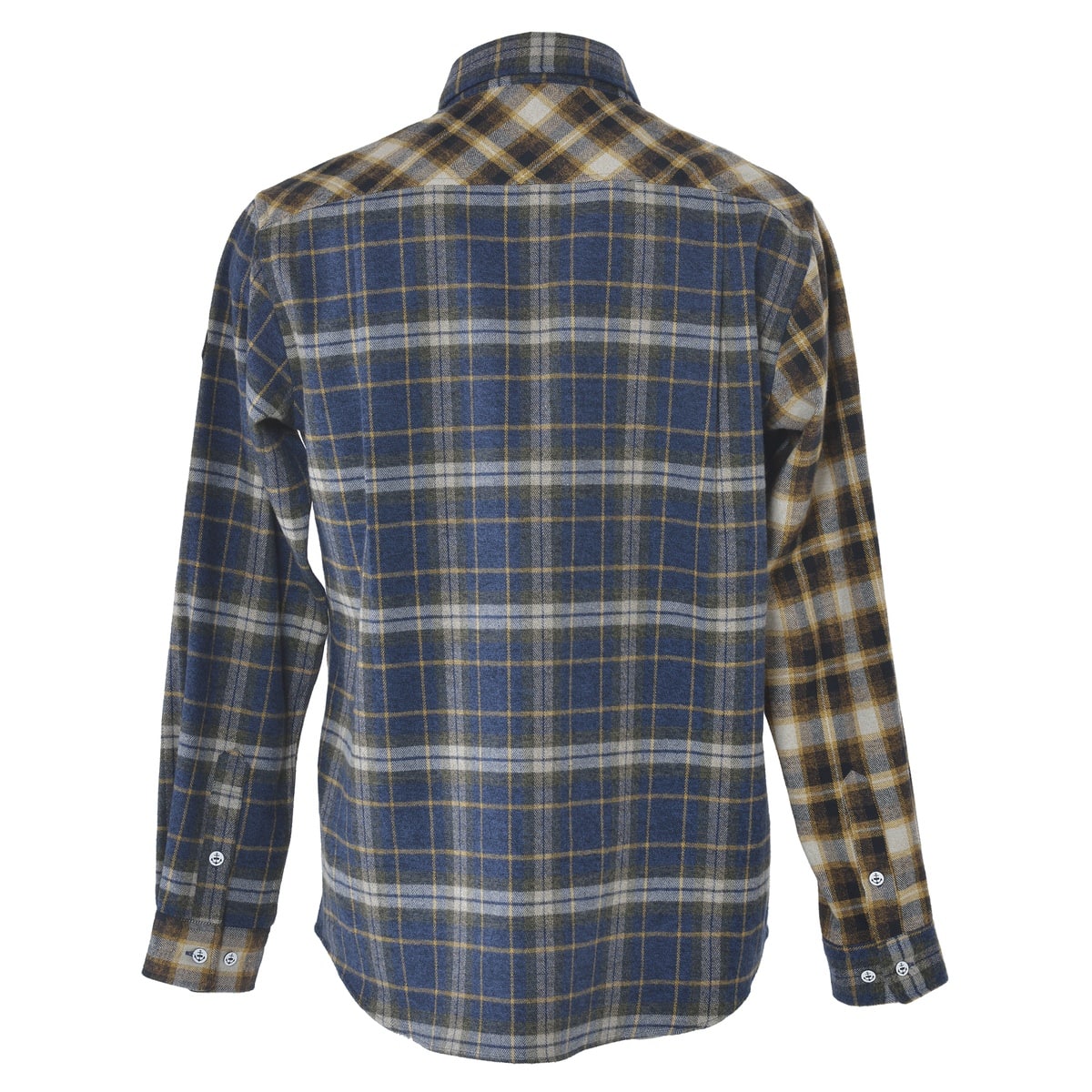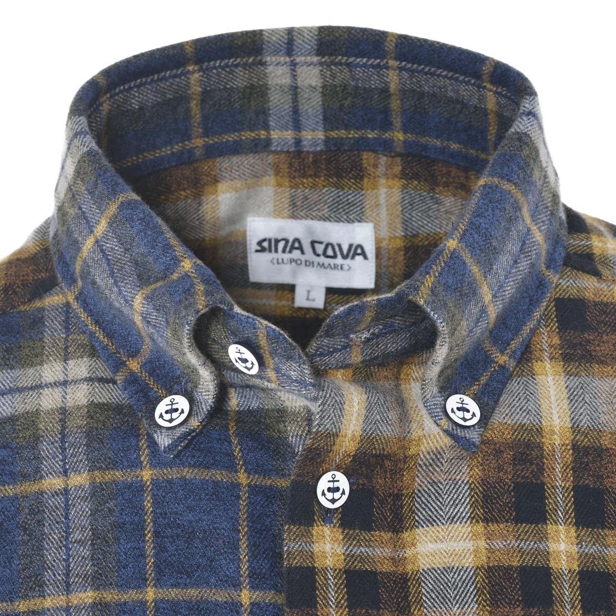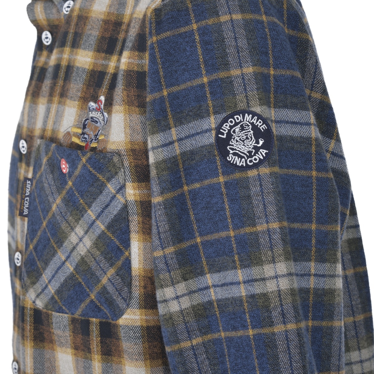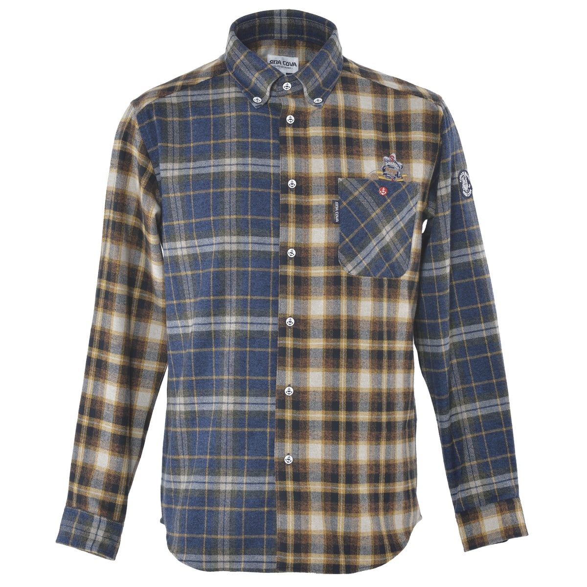 キャプテンが左ポケットから覗いているような刺繍をデザインしたクレイジーパターン長袖チェックシャツです。