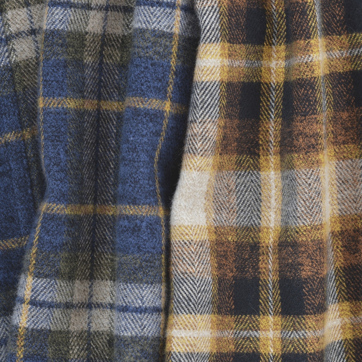 生地はメランジ感のあるツイード調に仕上げ、起毛加工を施した膨らみとウォーミー感あるネルチェック素材を使用しています。