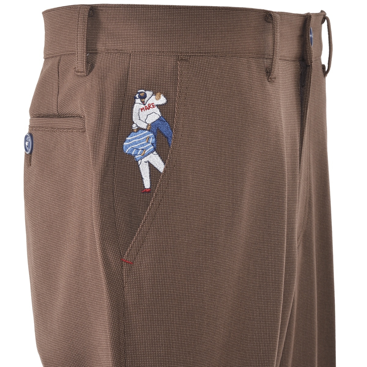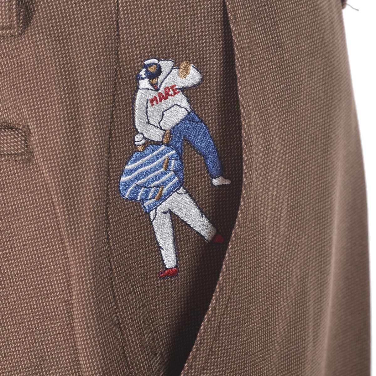 右ポケットからキャプテンとクルー飛び出している刺繍をデザインしたシナコバらしい遊び心のあるノータックパンツです。