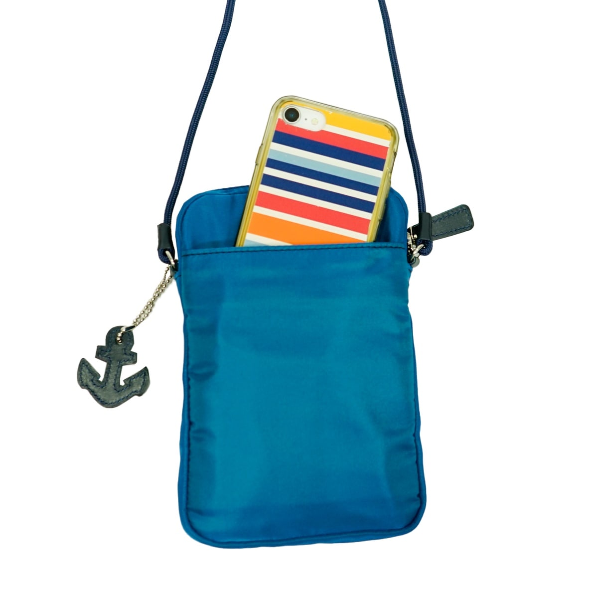 スマホと二つ折り財布が入るサイズ感で、ワンポイントアイテムとしてもお使いいただけます。