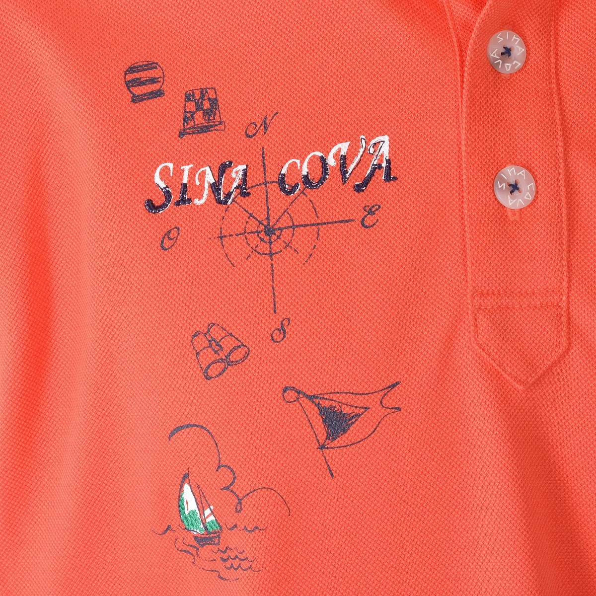 フロントには手書き風のキャプテンや海のモチーフプリントとエンブレム風ワッペンをデザインした半袖ポロシャツです。襟や袖口は振り柄でラインを入れた衿ゴム仕様にしアクセントを加えました。生地に吸水速乾性の高い特殊構造繊維のセオαを使用し高温多湿の夏のシーズンも快適に過ごせます。・吸水速乾・鹿の子生地・イカリボタン使用【SINA COVA 2025 Spring & Summer Style Book】掲載商品