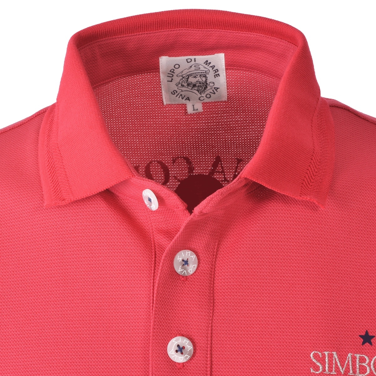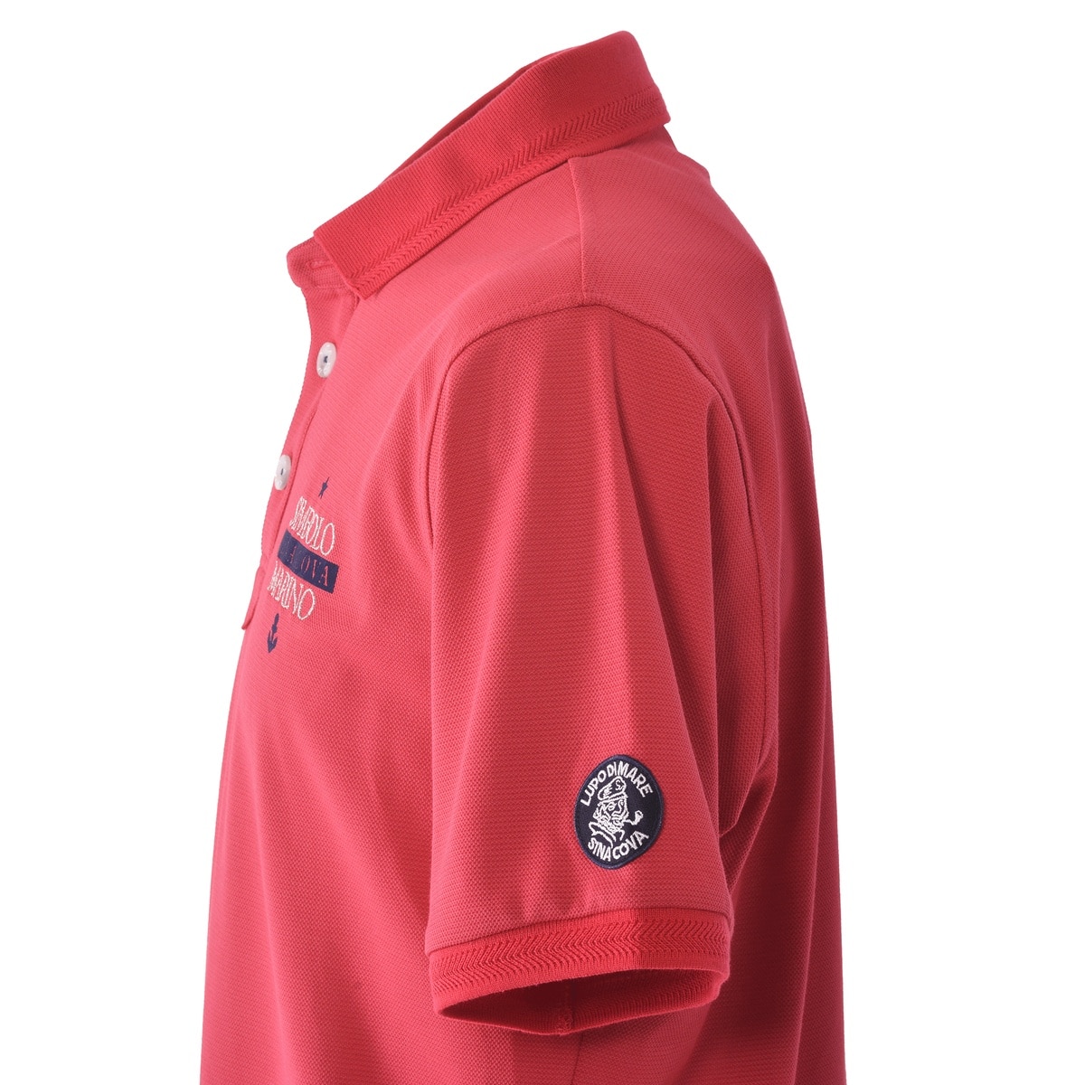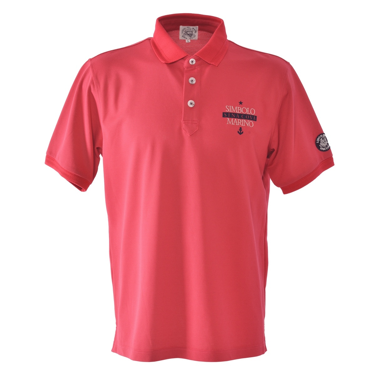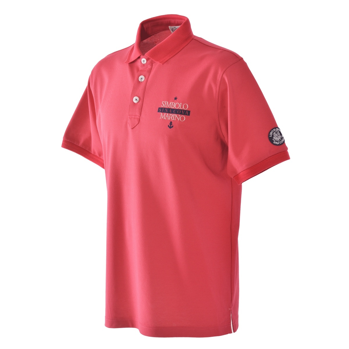 フロントに「SINA COVA」文字を刺繍とフロッキープリント、バックに手旗信号のフラッグモチーフをプリントをデザインした半袖ポロシャツです。