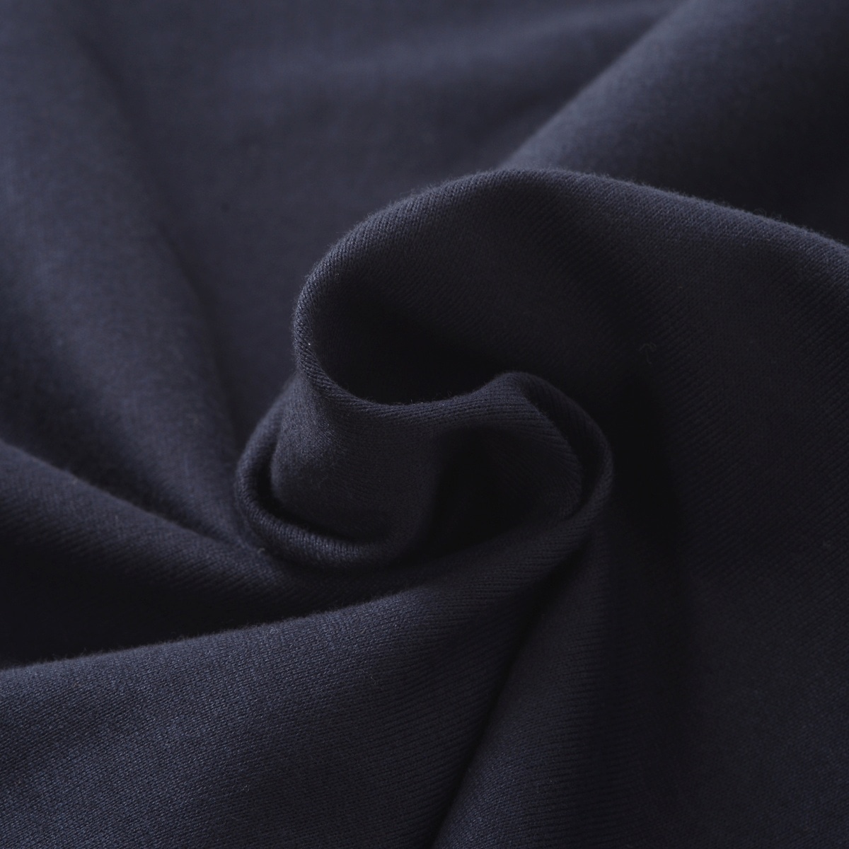 生地にはハイゲージで編み立てガス焼き工程を通すことで毛羽立ちを抑えさらっとした肌触りで耐久性も優れた素材を使用しています。