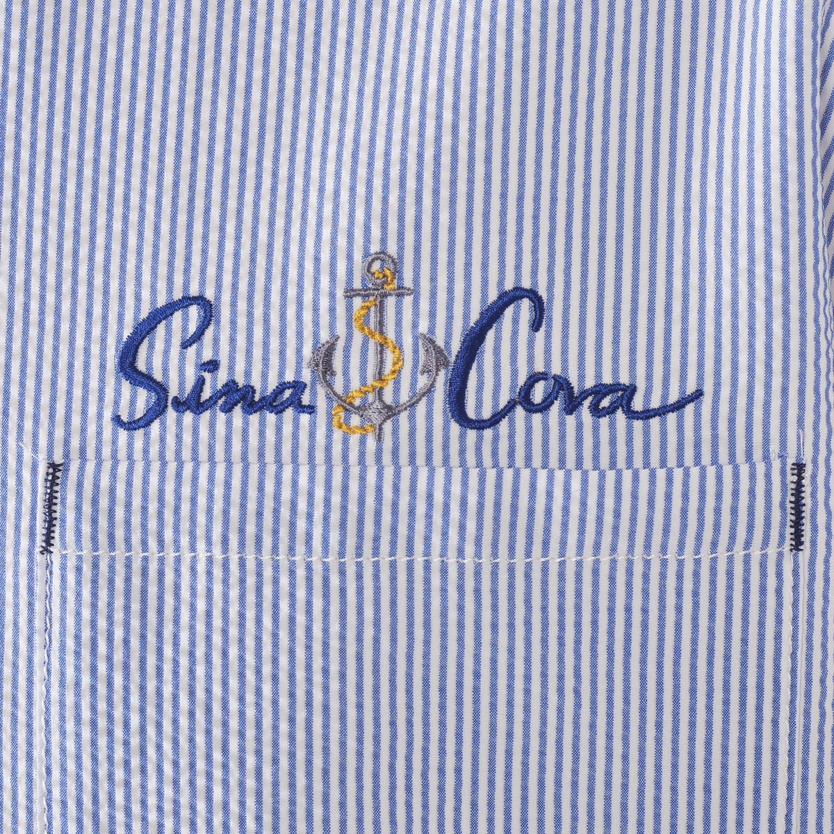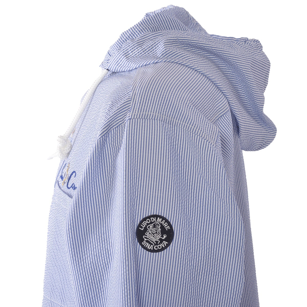 左胸と右袖に「SINA COVA」文字刺繍をデザインしたフード付きシャツジャケットです。