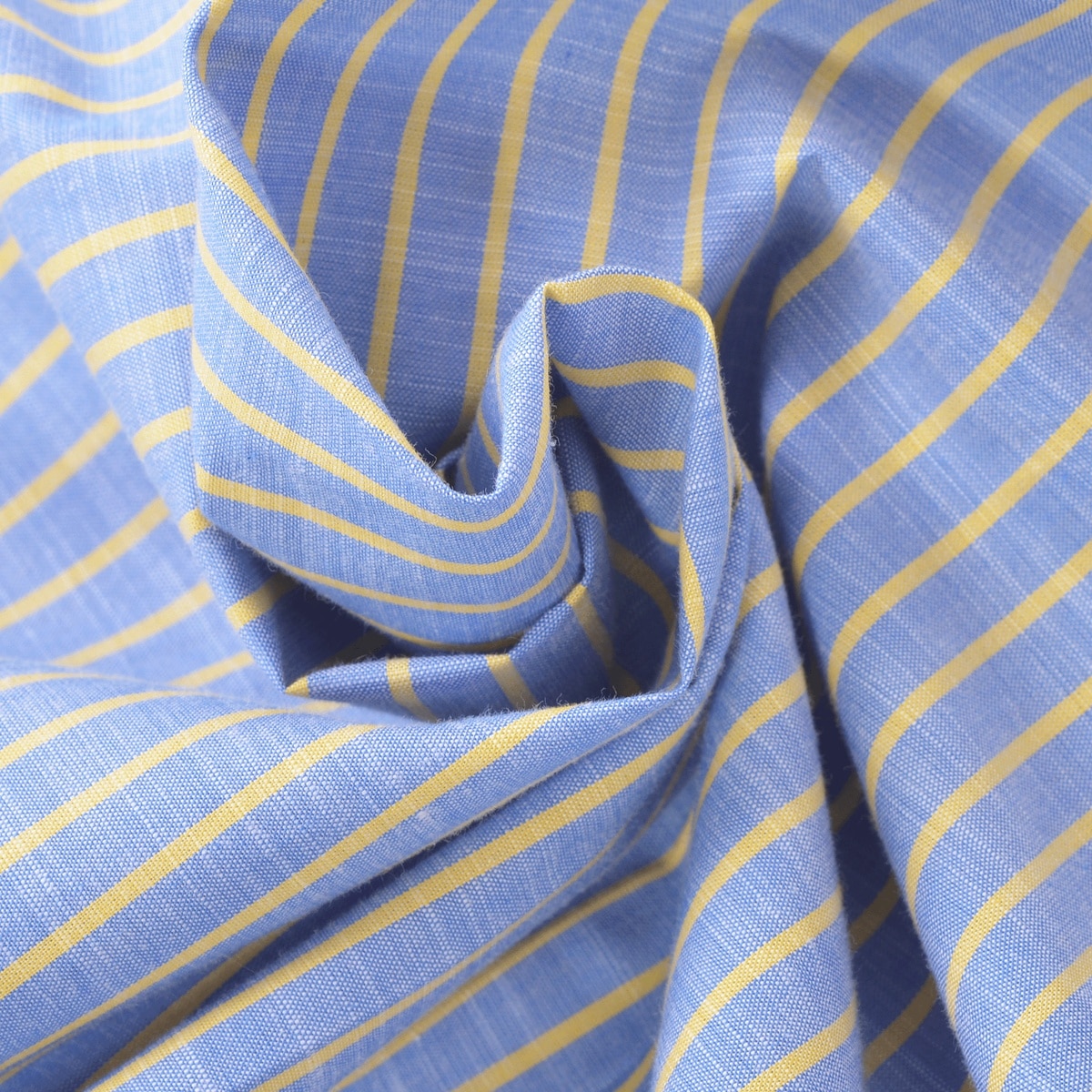 発色と綺麗なカラーが多いヨーロッパ(トルコ素材)のストライプ柄を使用したカジュアルシャツです。ポケットの上にワンポイントのイカリとフラッグの刺繍、そしてカフス剣ボロにメッセージ系の文字(海を愛する人のために)をさりげなく入れた商品に仕上げています。
