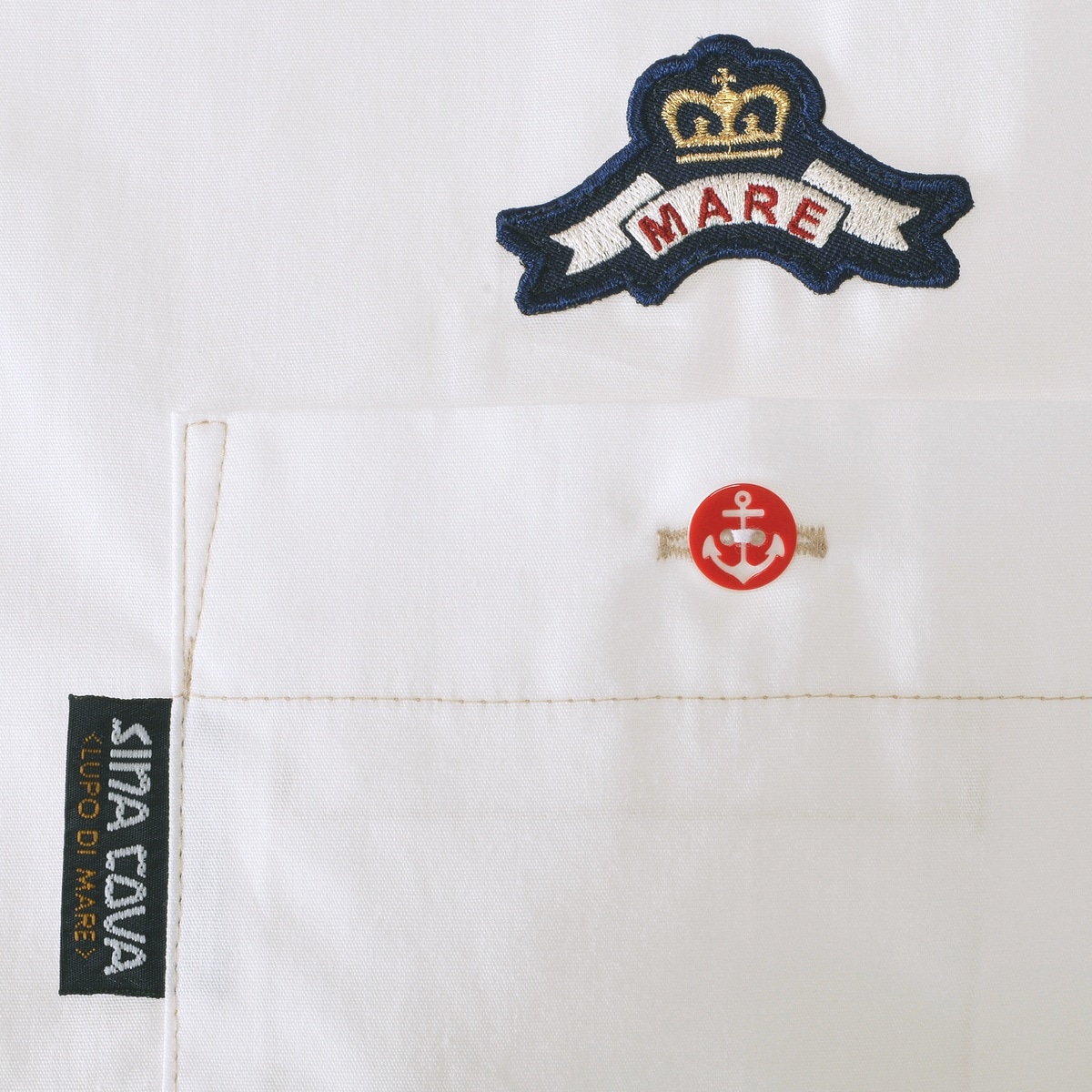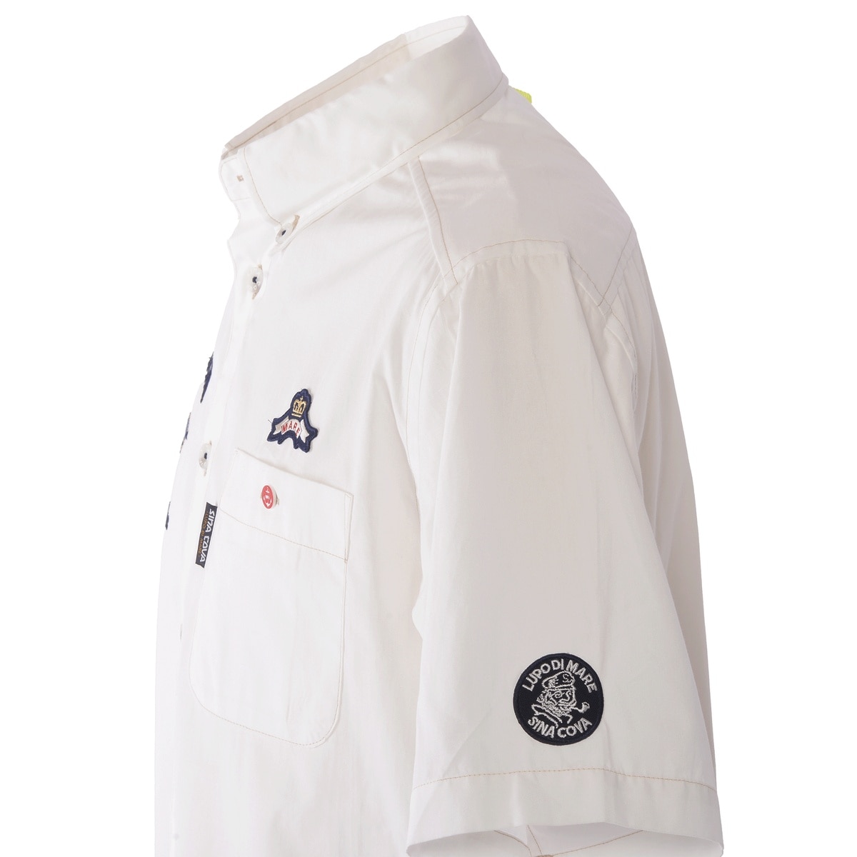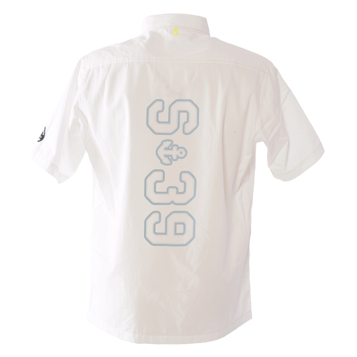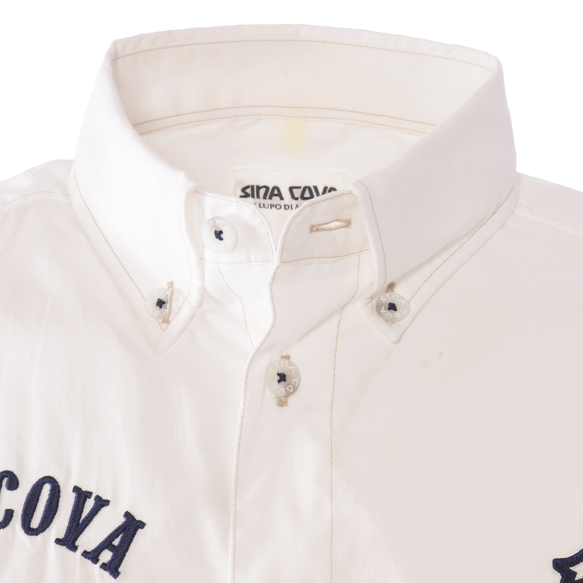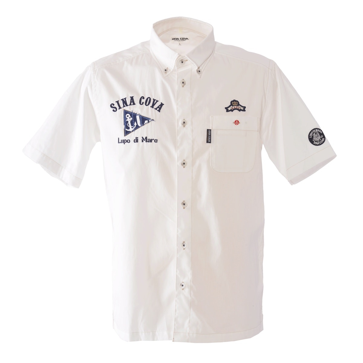 フロントにフラッグ刺繍とワッペン、バッグにSINACOVAの「S」とイタリアの国際番号「39」をプリントでデザインしレーシングイメージを表現した半袖ボタンダウンシャツです。