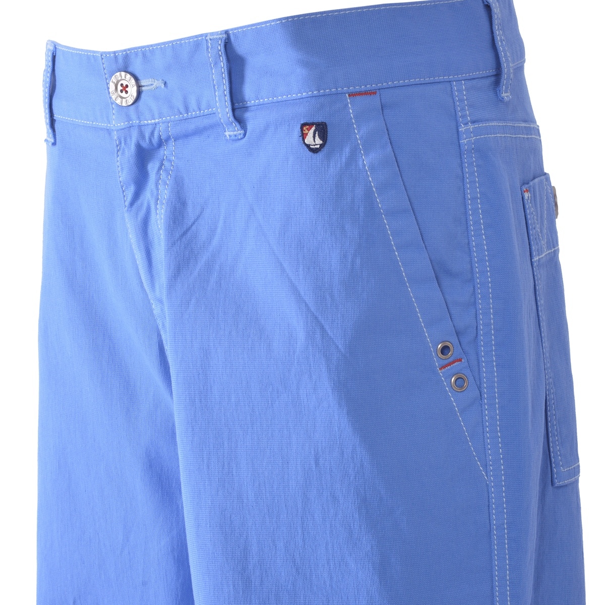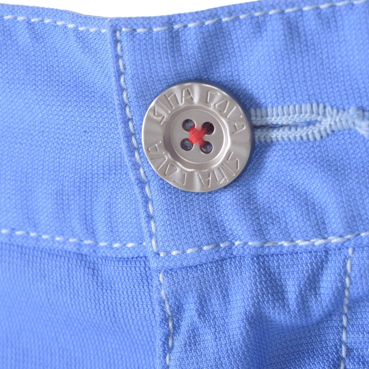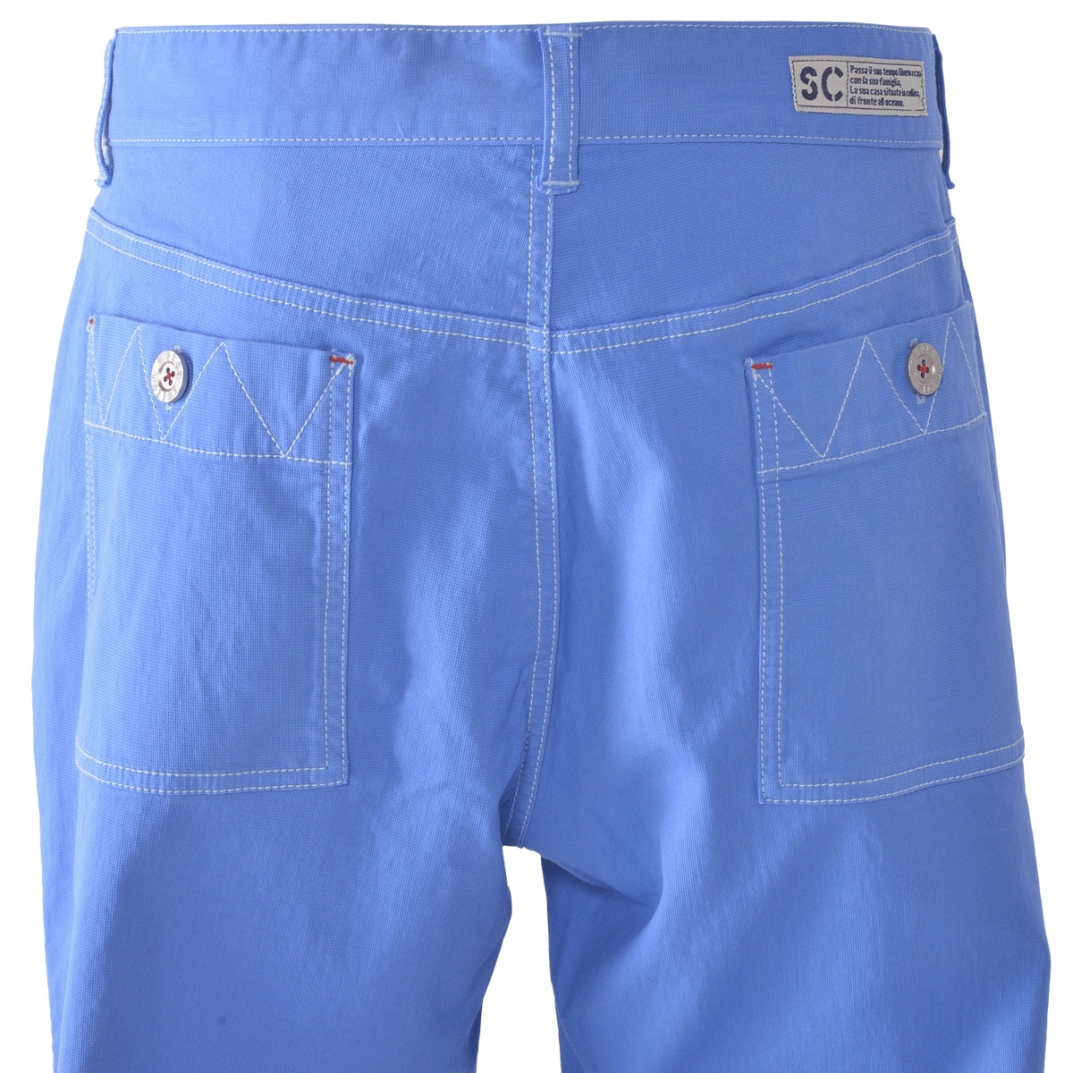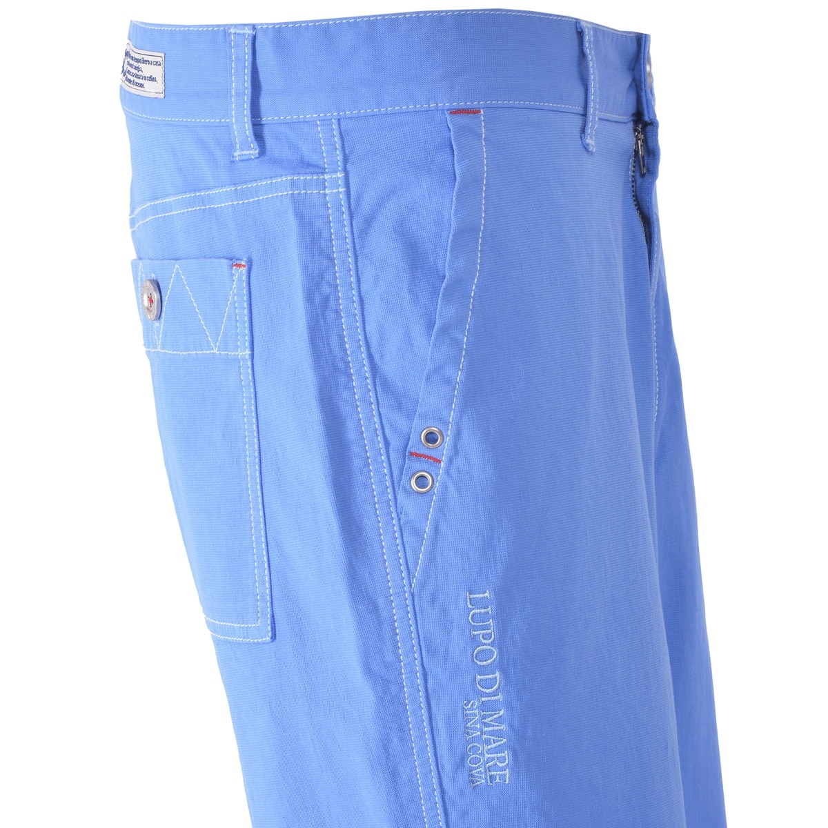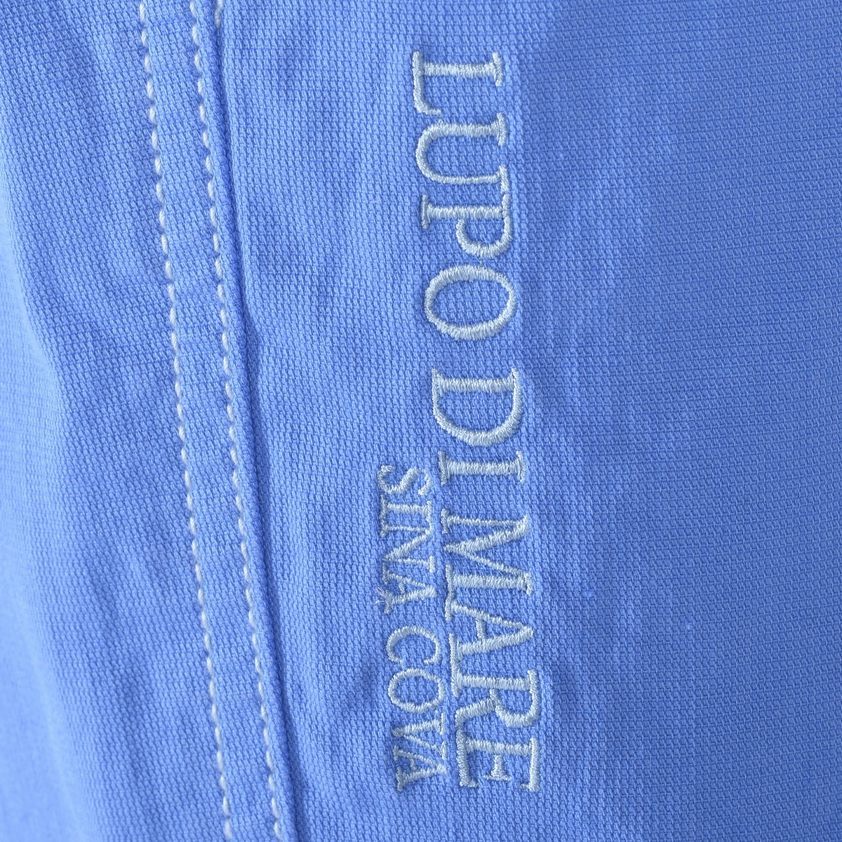 右足サイドに「LUPO DI MARE」「SINA COVA」の刺繍をデザインしたノータックテーパードパンツです。