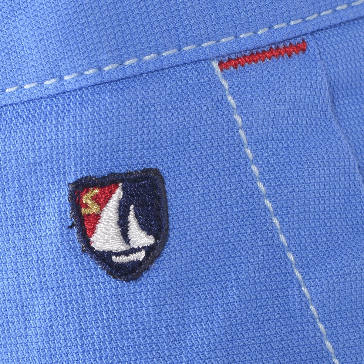 マリンテイストのハトメやよってのセールをイメージしたステッチなど細部にこだわった一着です。