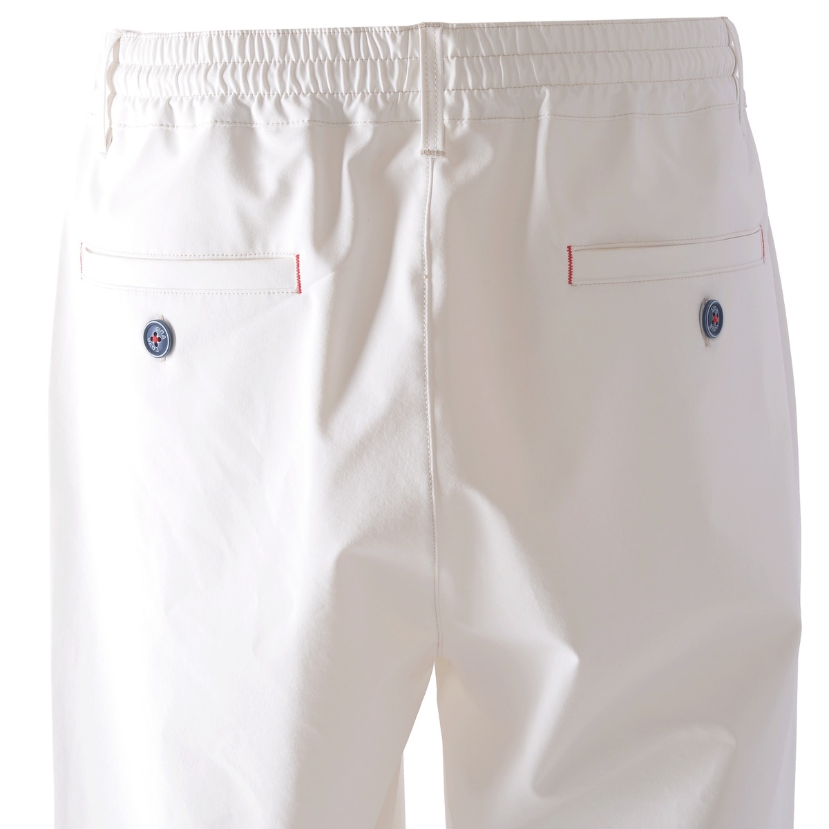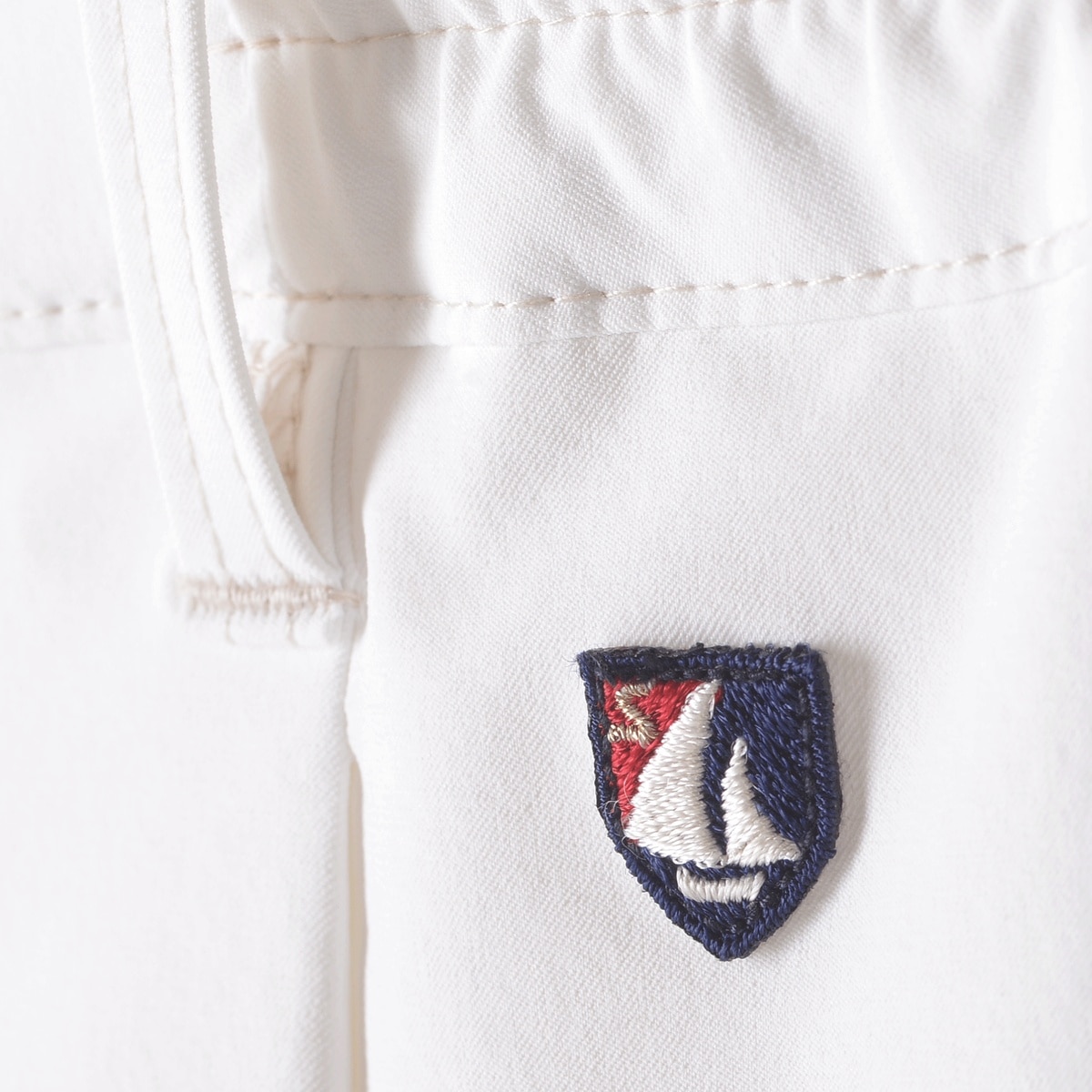 ヨットをイメージしたさり気ないアイコンワッペン、オリジナルのボタンやカラーステッチを使用しシンプルながらもシナコバらしいマリンパンツに仕上げました。