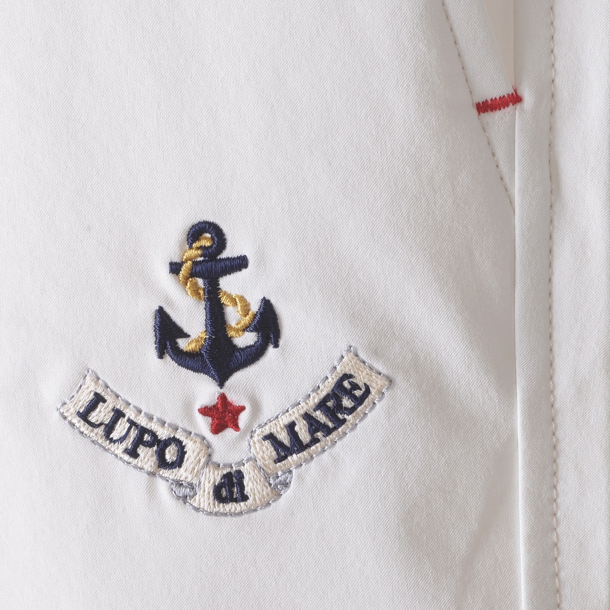 フロントにイカリと「LUPO DI MARE」の文字を刺繍でデザインしたワンタックマリンパンツです。