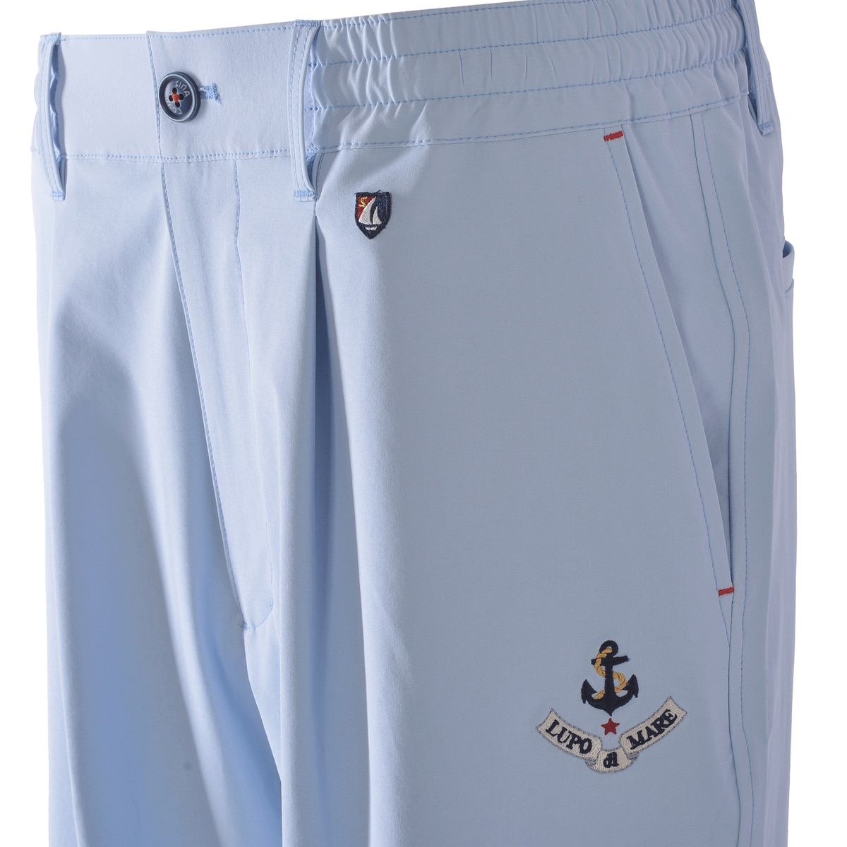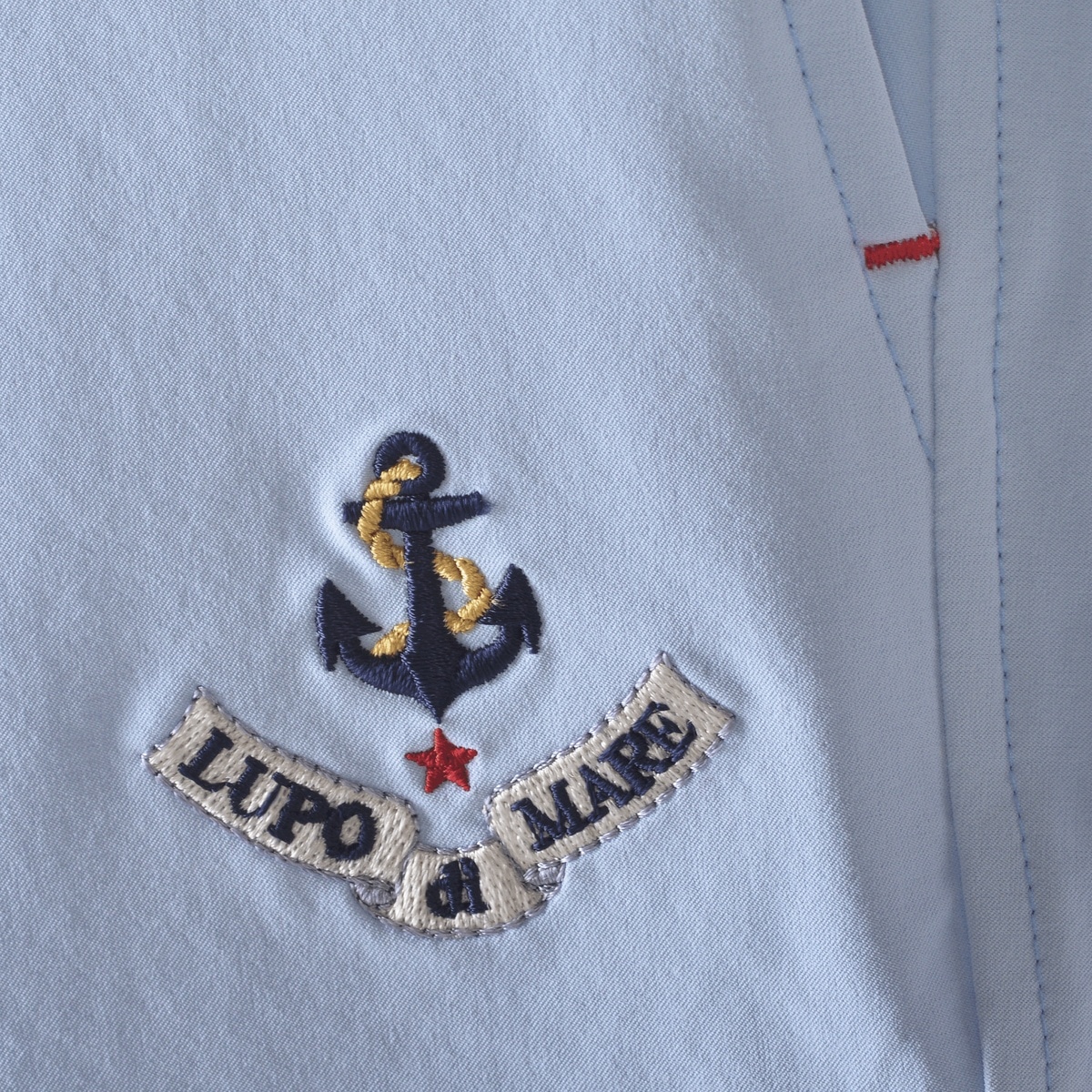 フロントにイカリと「LUPO DI MARE」の文字を刺繍でデザインしたワンタックマリンパンツです。
