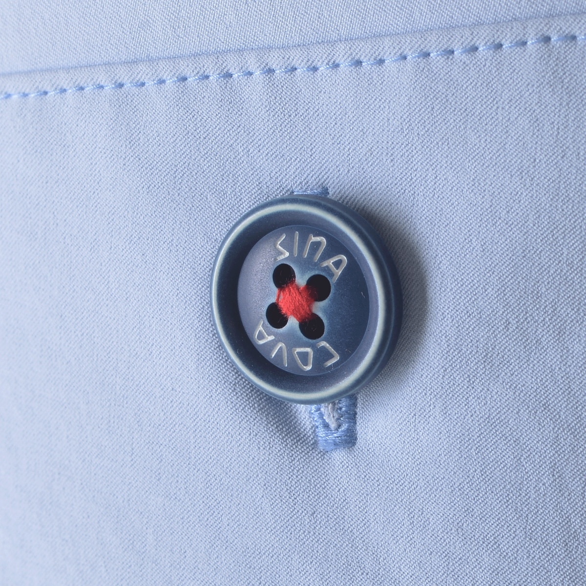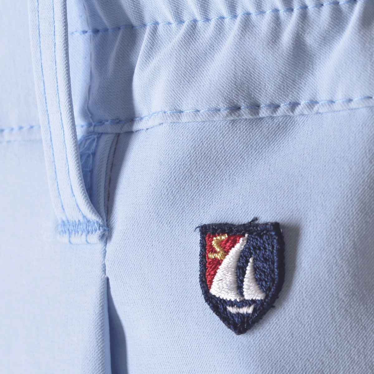 ヨットをイメージしたさり気ないアイコンワッペン、オリジナルのボタンやカラーステッチを使用しシンプルながらもシナコバらしいマリンパンツに仕上げました。