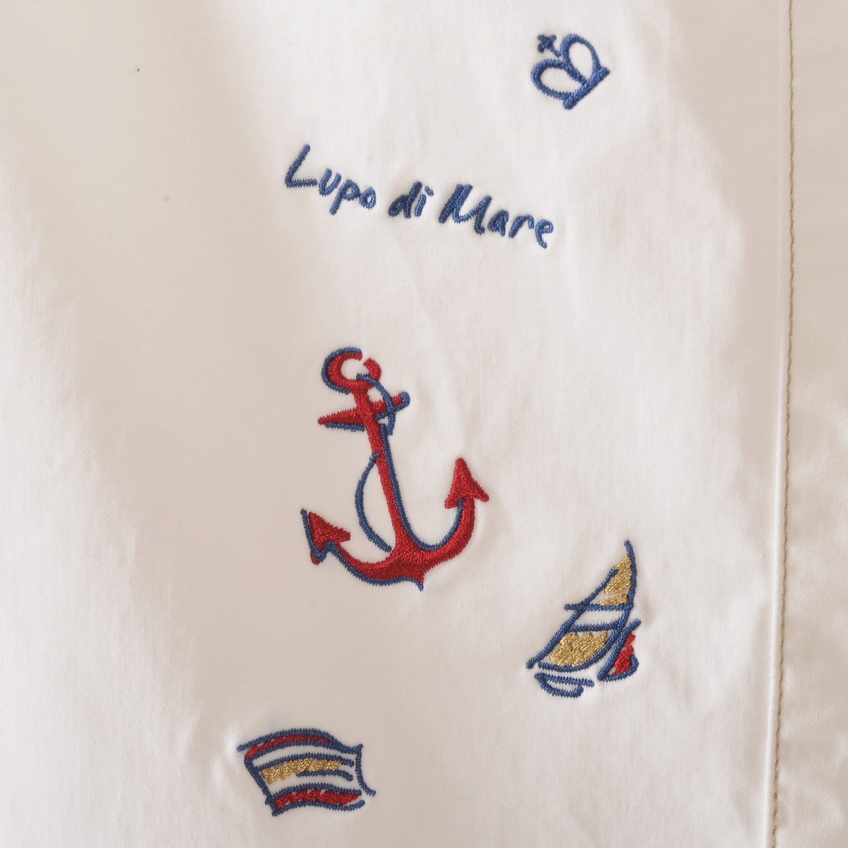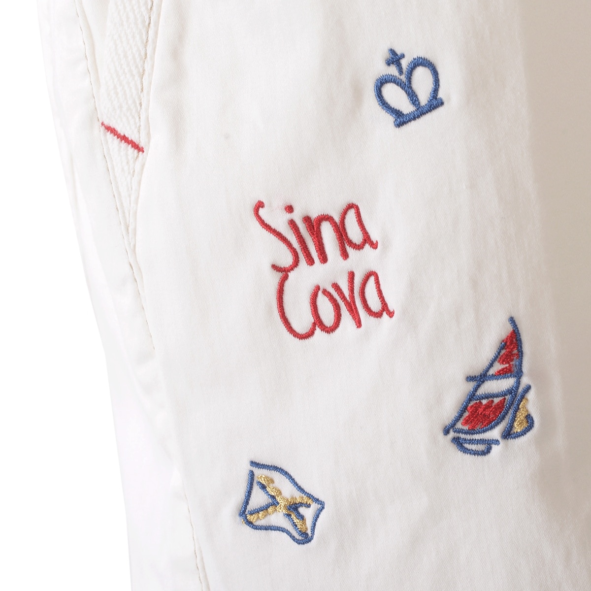 シナコバマリンモチーフを刺繍やプリントで各所にデザインしたショートパンツです。