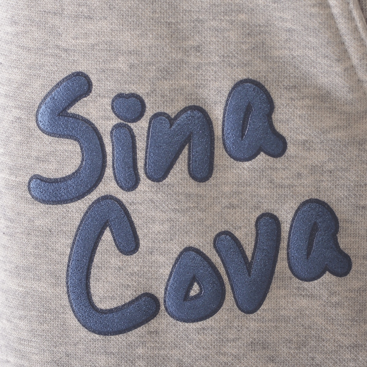 「SINA COVA」文字を高級感のあるパール発泡プリントでデザインしたスウェットパンツです。