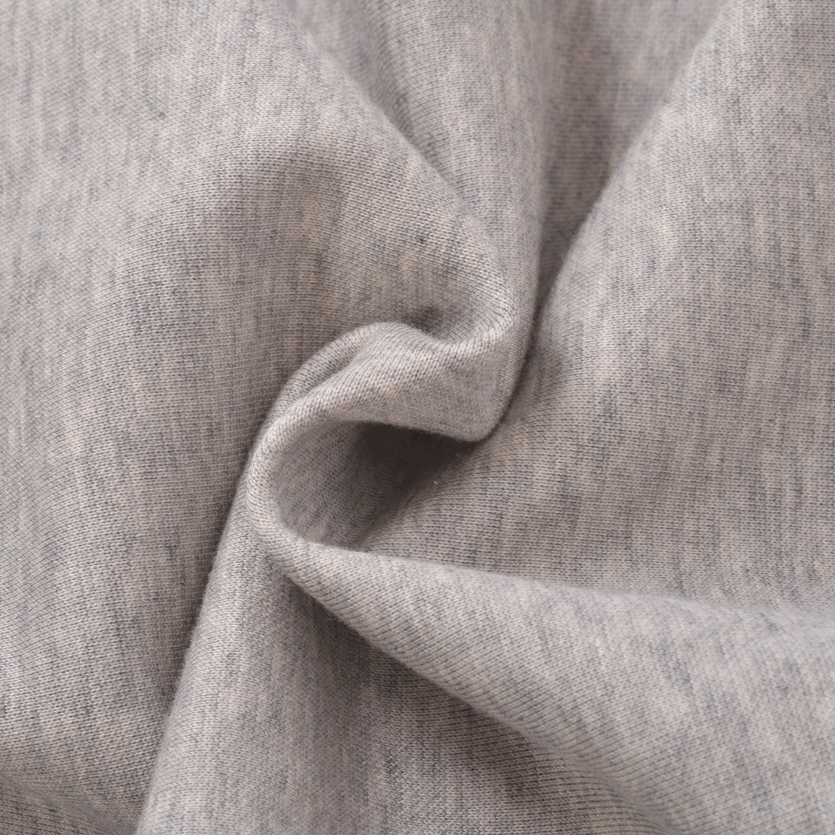 超長綿スーピマコットンに特殊加工を施すことにより、落ち着きのある光沢感とハリ感を実現。今までの裏毛では難しかった薄さと度詰め感の新感覚の素材です。