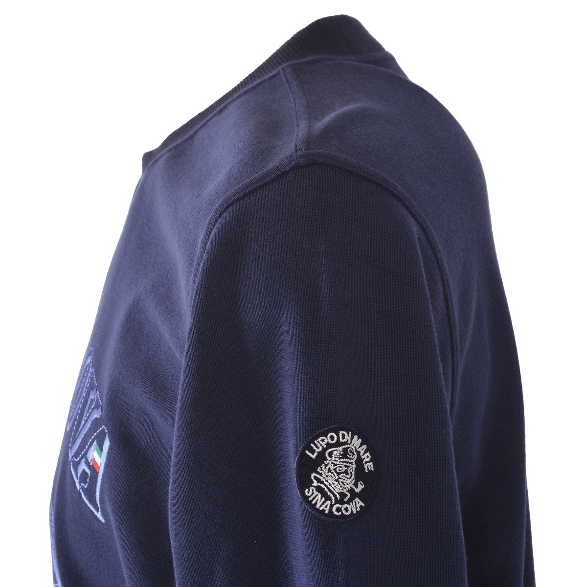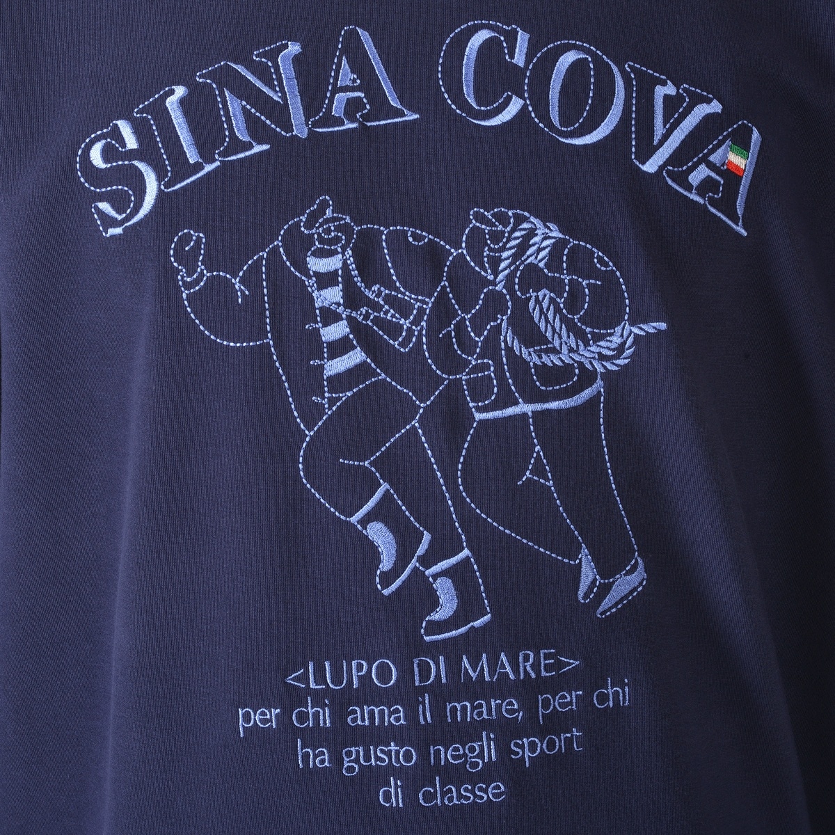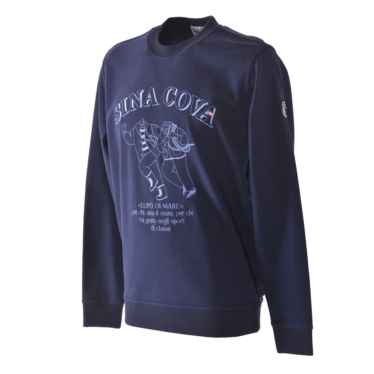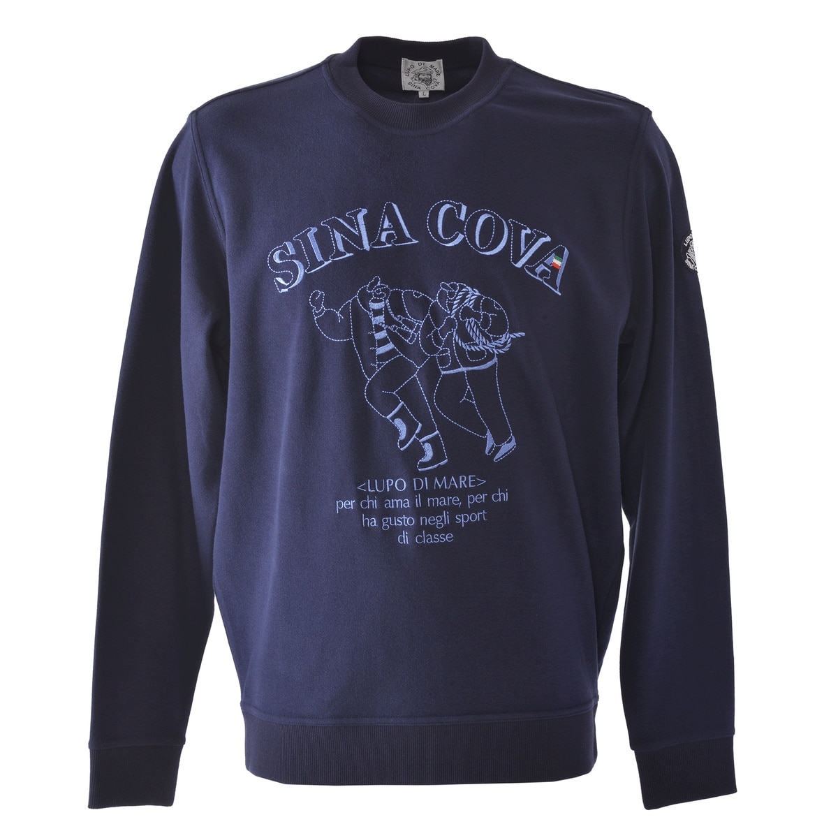 キャプテンとクルーのモチーフを生地と同系色の刺繍でデザインしたクルーネックトレーナーです。
