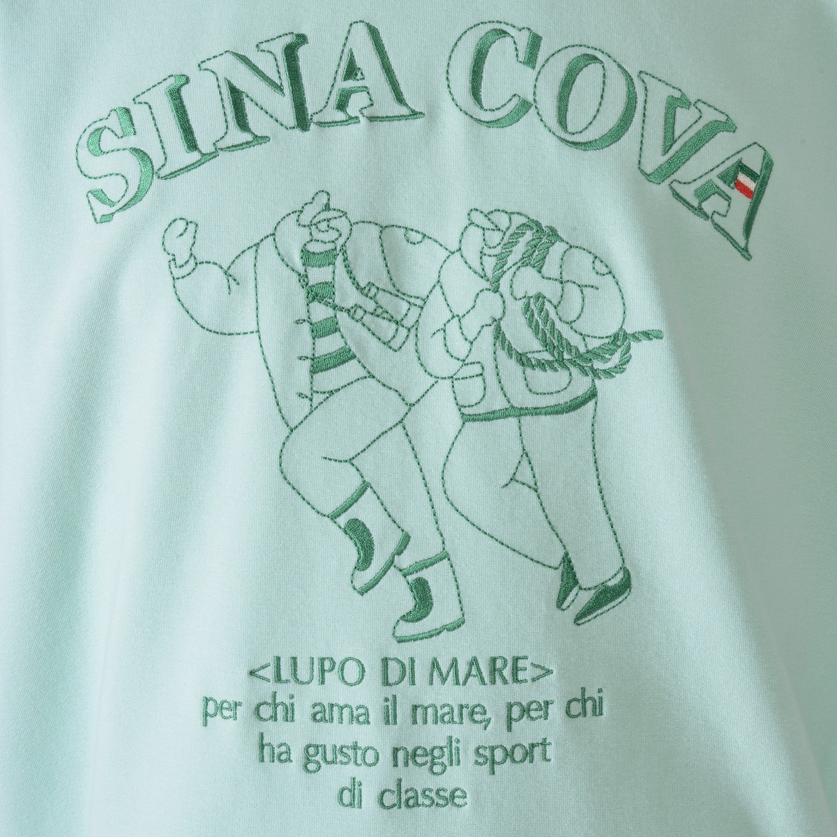 キャプテンとクルーのモチーフを生地と同系色の刺繍でデザインしたクルーネックトレーナーです。
