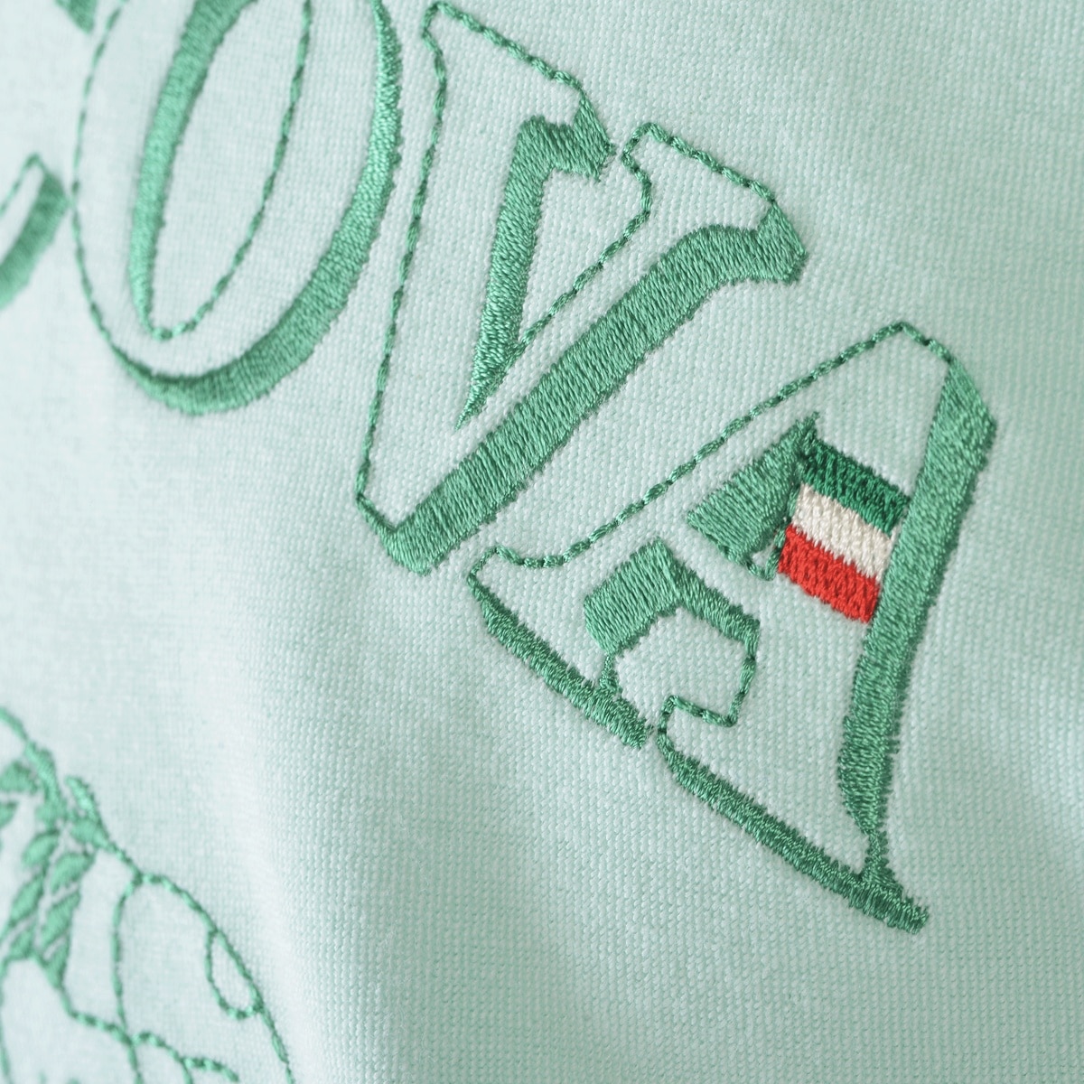 生地はソフトでコシのあるコーマ糸で編み上げ、ドットのようなコンパクトな形状により新鮮な表面感とパイルにありがちな引っ掛かりを抑えたストレッチコンパクトパイル素材を使用しています。