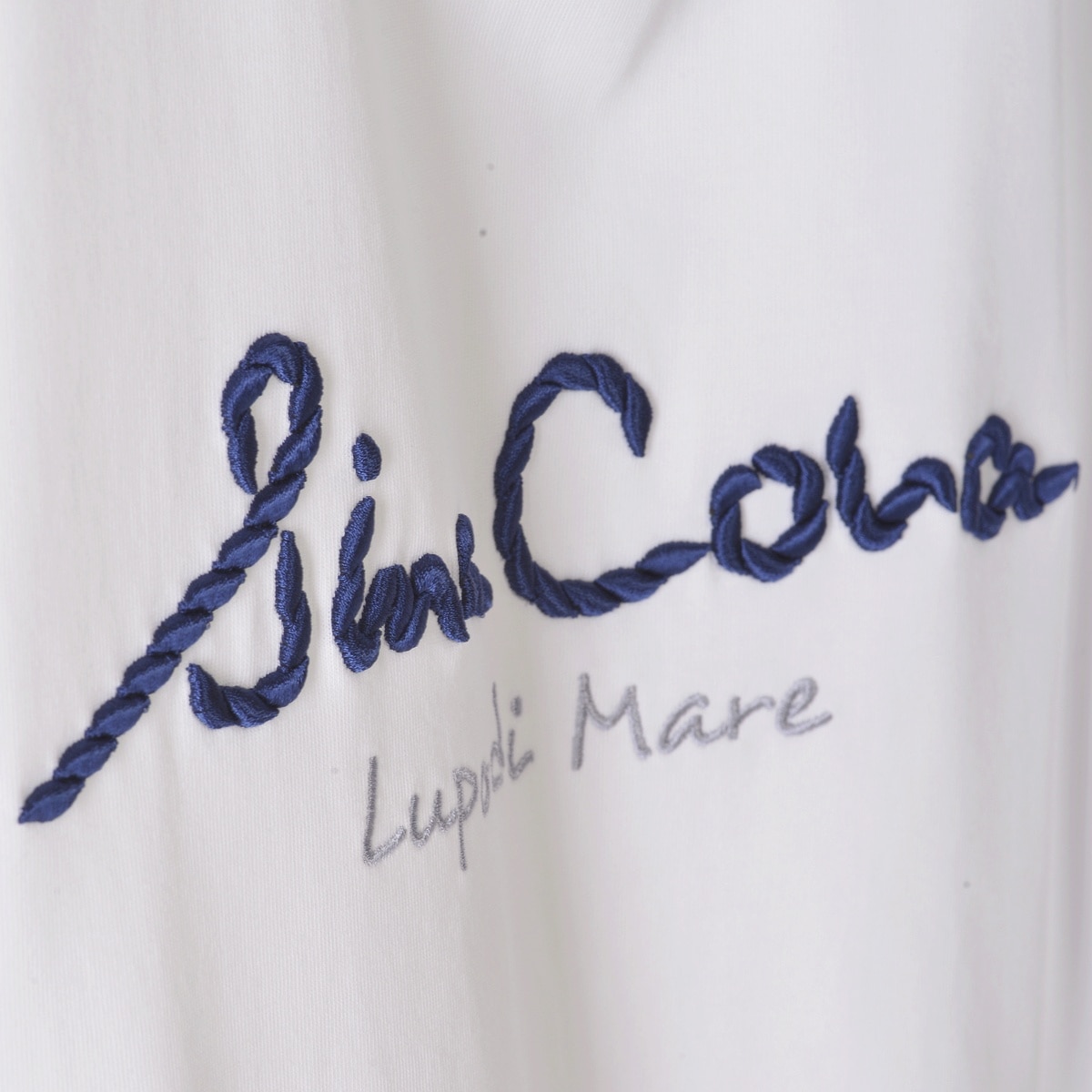 フロントにロープ調の「SINACOVA」ロゴ刺繍にウレタンを挟みこみ立体感をUPさせたデザインの5分袖Tシャツです。