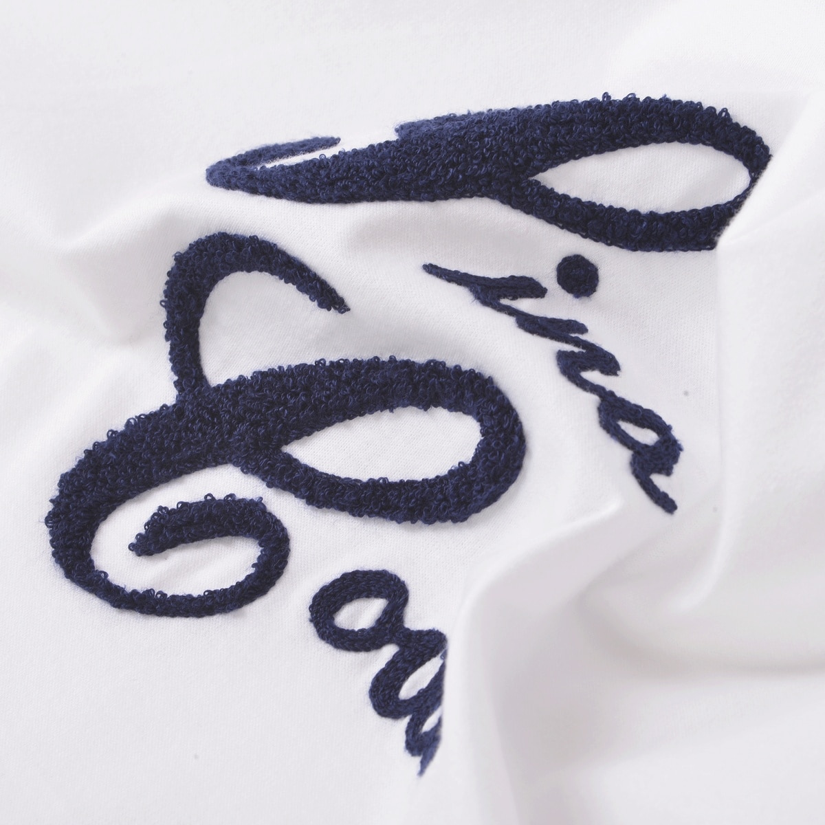 フロントにパイルとチェーン刺繍で立体感のあるロゴを入れ、ネック部分はメッシュ調のラインをデザインした半袖Tシャツです。サイズはラフすぎる印象を持たせないややゆとり感のあるシルエットです。上質なスーピマ超長綿を使用し、コンパクトヤーン仕上げで非常に毛羽が少なくキレイな生地感とソフトな風合いのあるスムース素材を使用。綿特有の通気性と吸水性はもちろん、程よい肉感とストレッチ性に富んでいます。【SINA COVA 2025 Spring & Summer Style Book】掲載商品