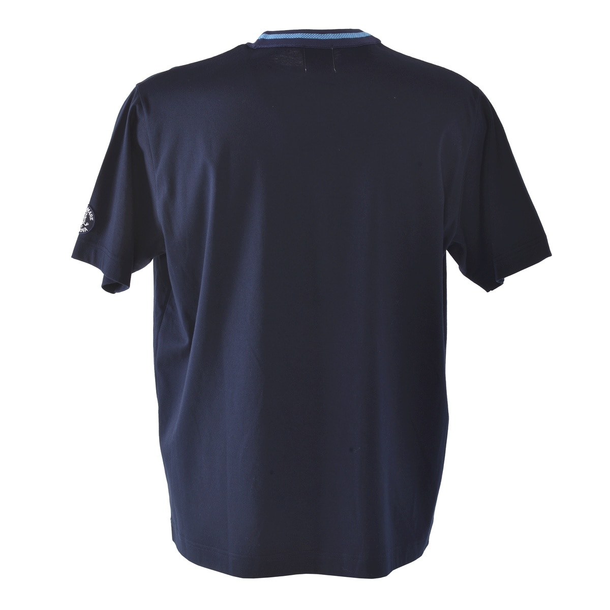 フロントにパイルとチェーン刺繍で立体感のあるロゴを入れ、ネック部分はメッシュ調のラインをデザインした半袖Tシャツです。
