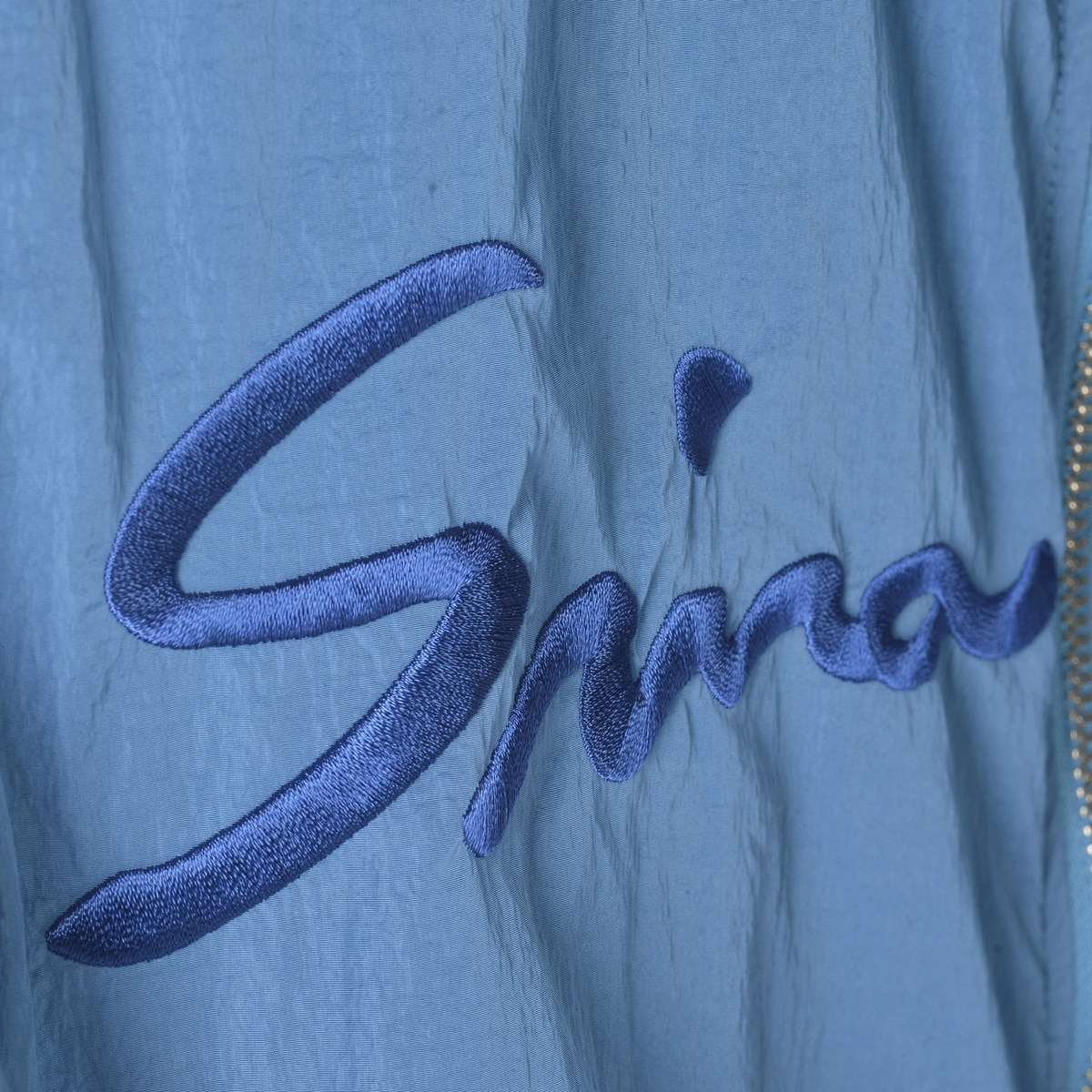 「SINA COVA」文字刺繍を本体のカラーと同色でデザインし鮮やかな色でクールさとキレイなムードを演出したボンバージャケットです。
