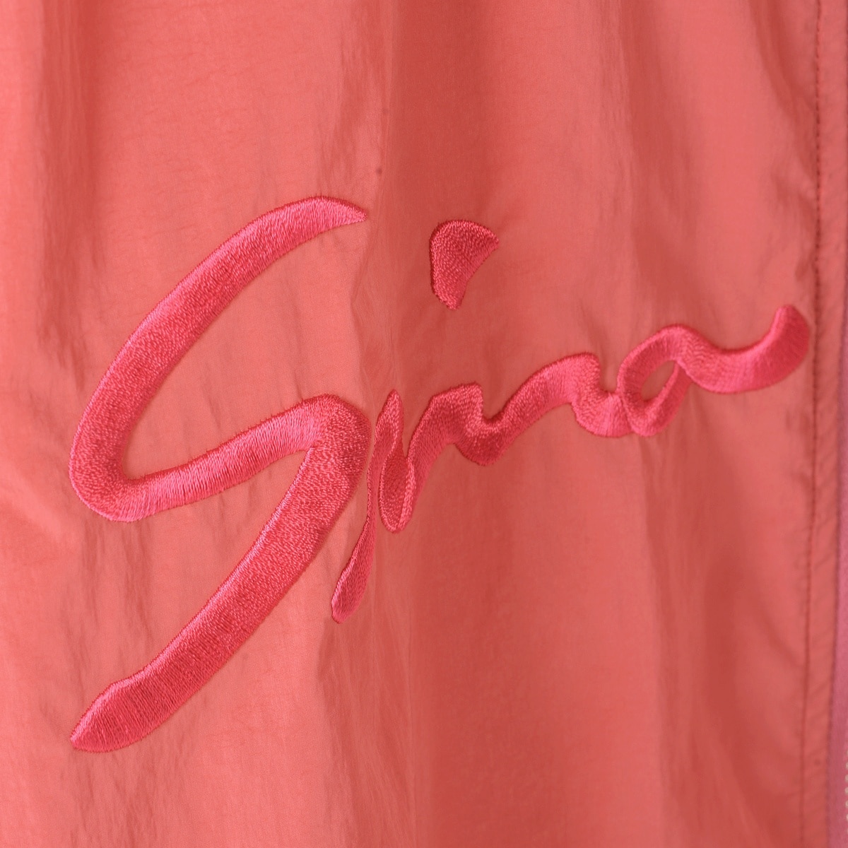 ナイロン特有のタフな強度としなやかな肌触りと微光沢感がスポーティーな印象の一着です。