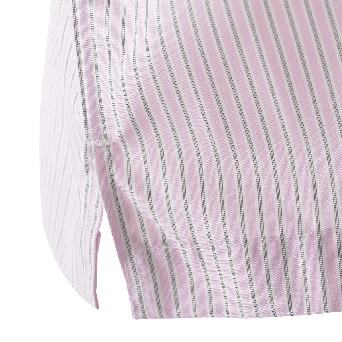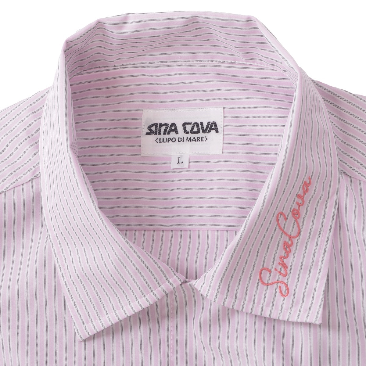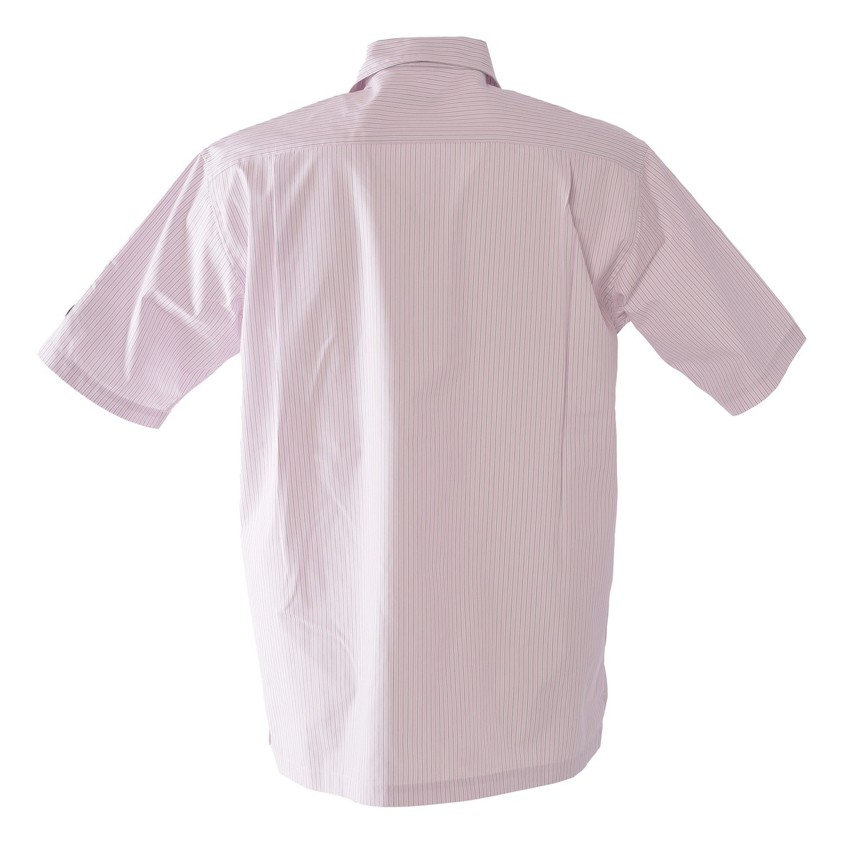 細かなストライプ柄は落ち着いた印象を与え、夏の大人シャツスタイルとしてお勧めです。